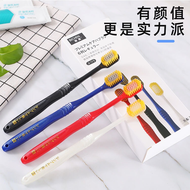 碧晨54孔8支宽头日式牙刷成人软毛竹炭盒装家庭装工厂