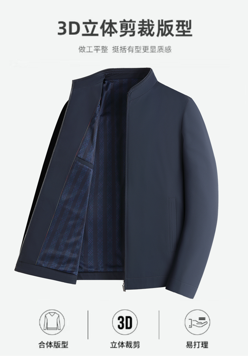【Q】【新款DLC】大依优型大码男立领夹克拉链外套男商务休闲加肥加大夹克上衣胖子显瘦