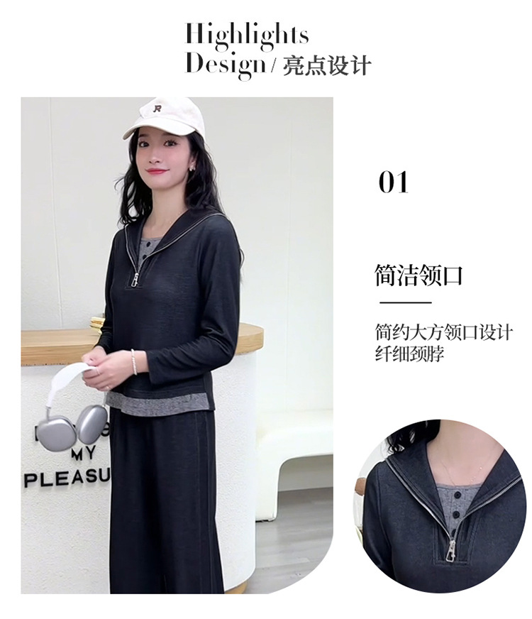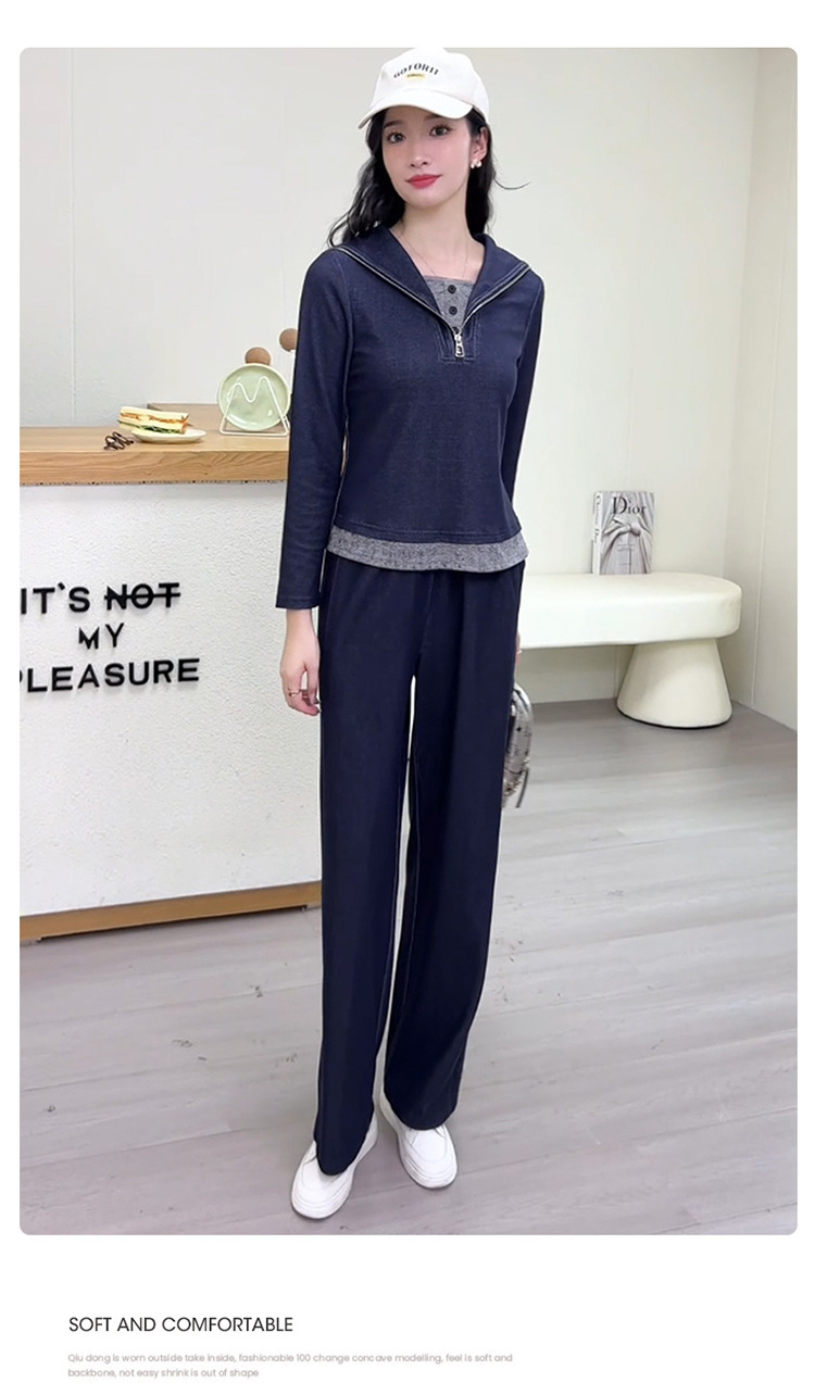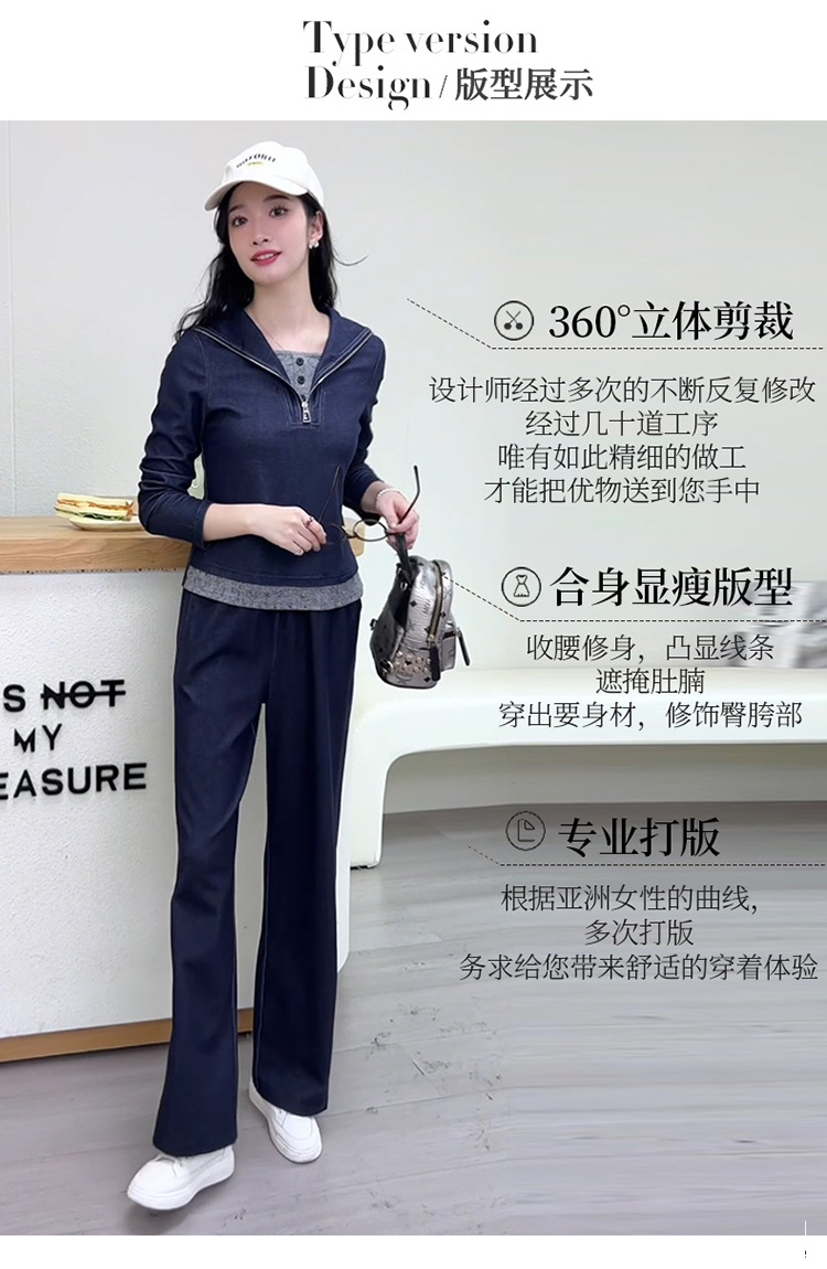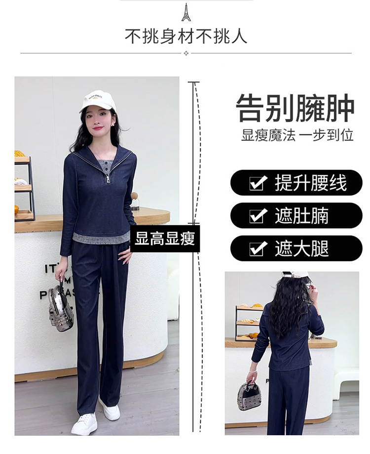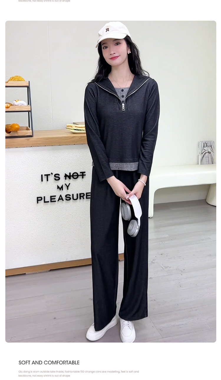 QYM 1C2503-Y运动服两件套连帽长袖小衫上衣+直筒阔腿裤套装