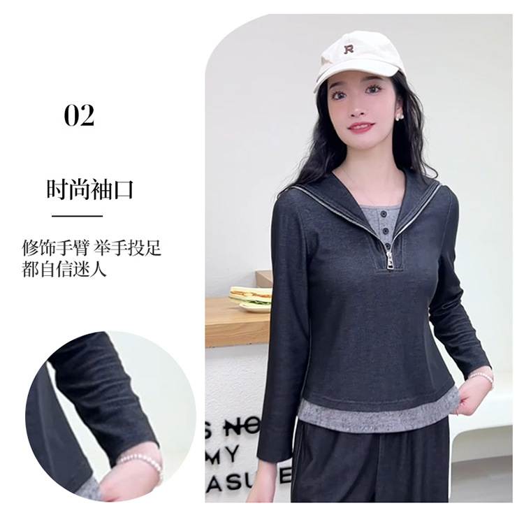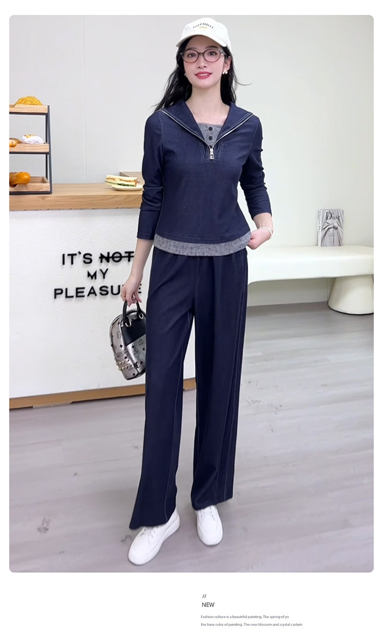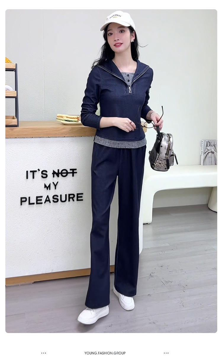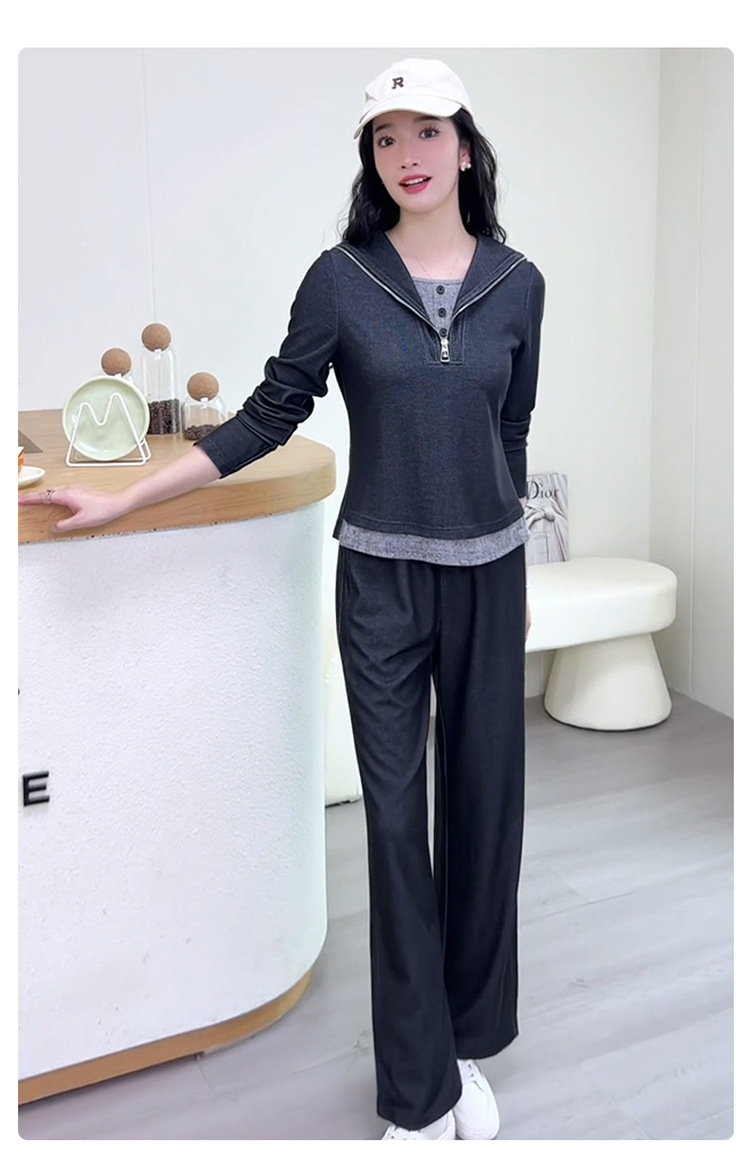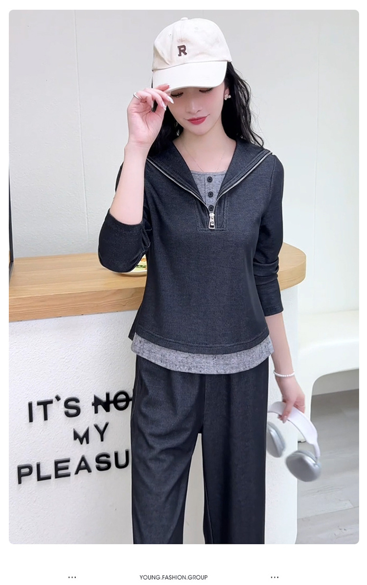QYM 1C2503-Y运动服两件套连帽长袖小衫上衣+直筒阔腿裤套装