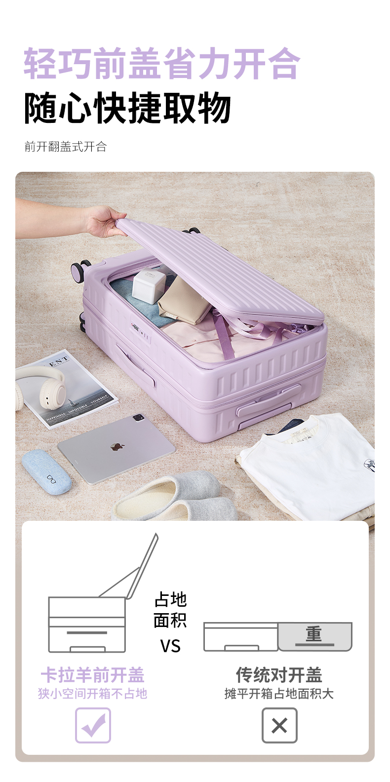 【红点奖设计师新款 】卡拉羊前开门大深舱可扩容行李箱CX8130
