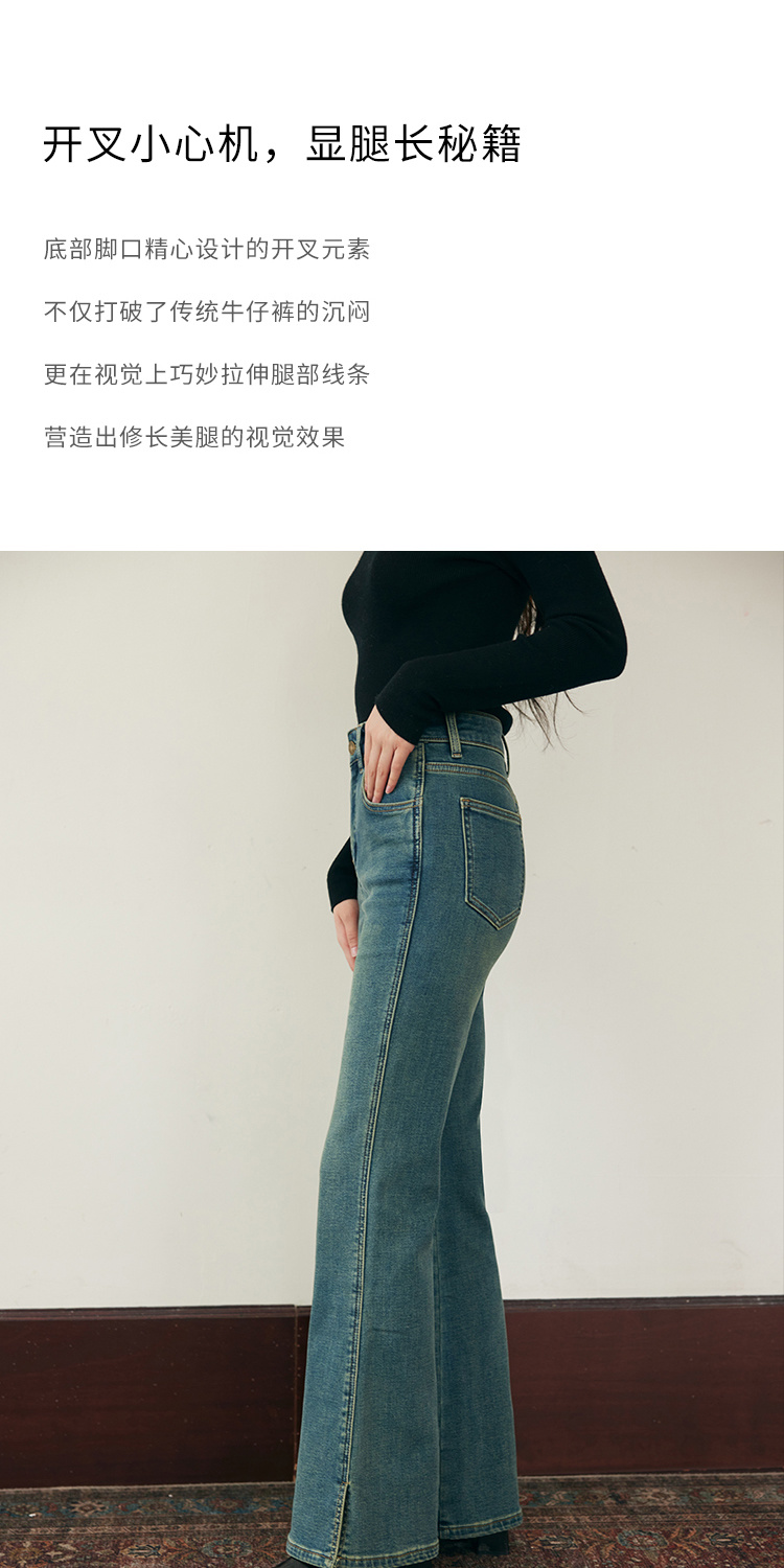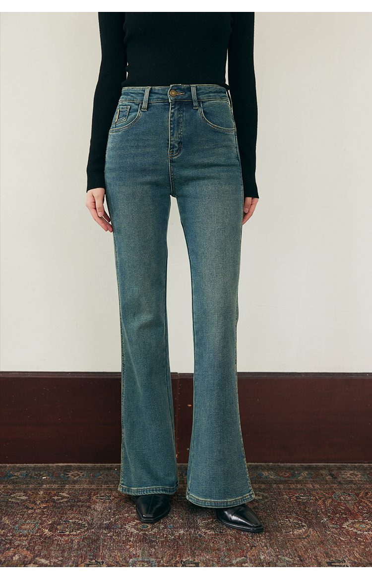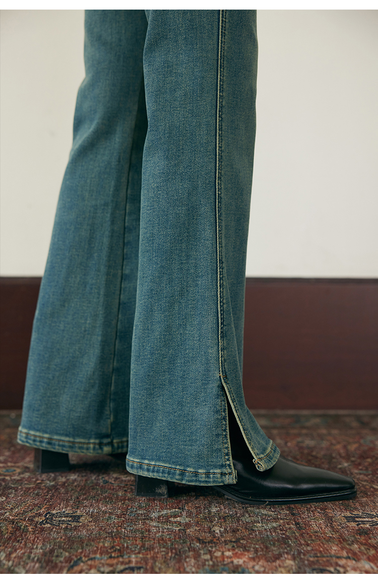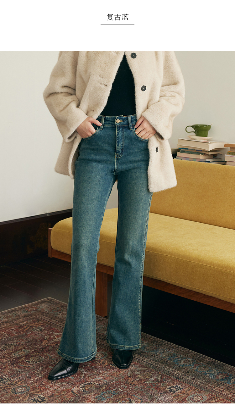 HeyDress复古微喇牛仔裤女秋冬高腰弹力修身喇叭裤加厚德绒裤子
