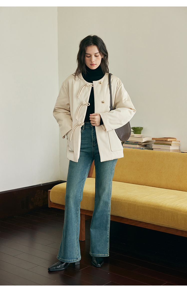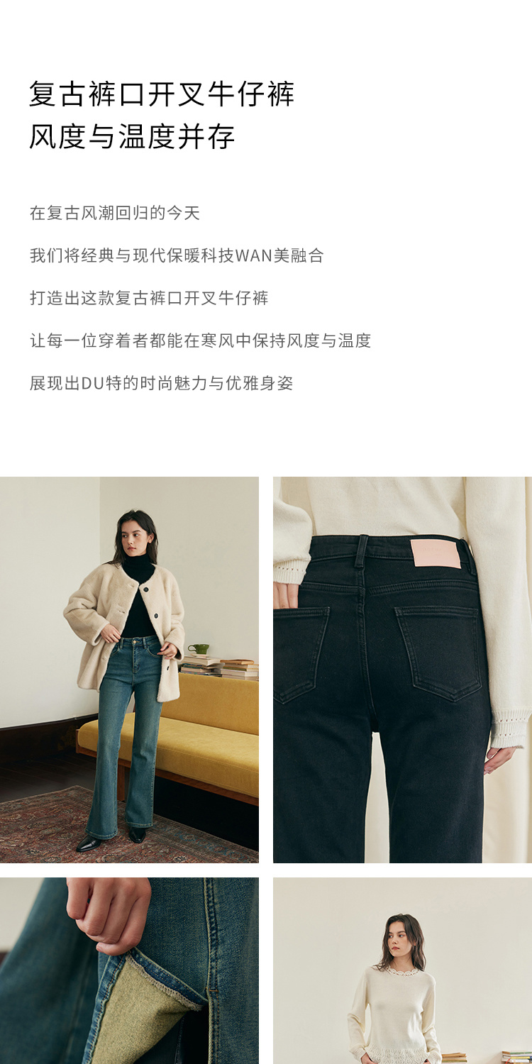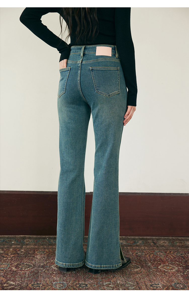 HeyDress复古微喇牛仔裤女秋冬高腰弹力修身喇叭裤加厚德绒裤子