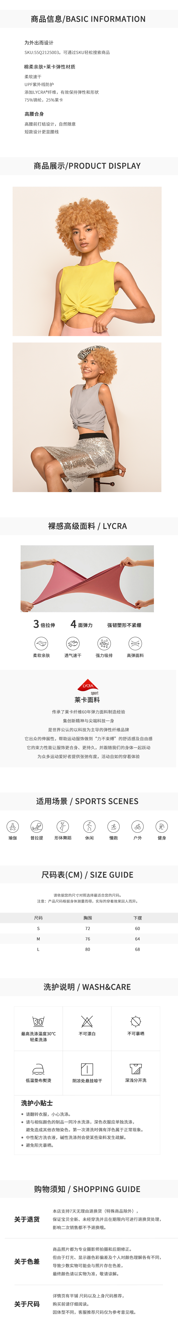 氨基酸保湿纤维 防晒短款运动背心(不带胸垫)