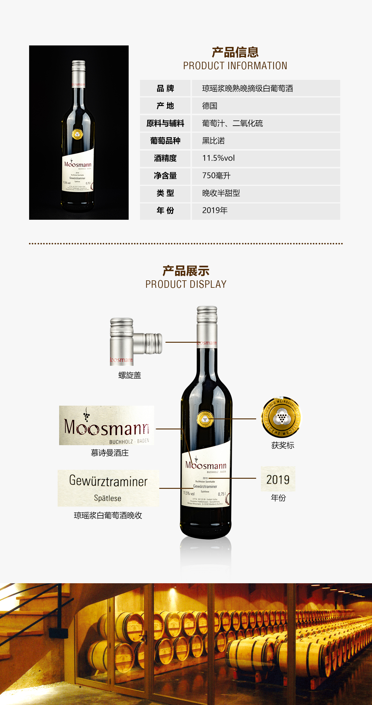 琼瑶浆晚熟晚摘级白葡萄酒【晚收半甜型】
