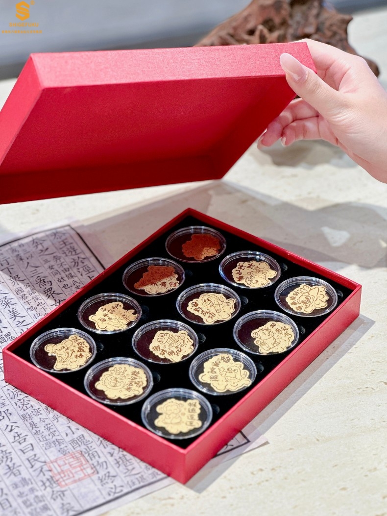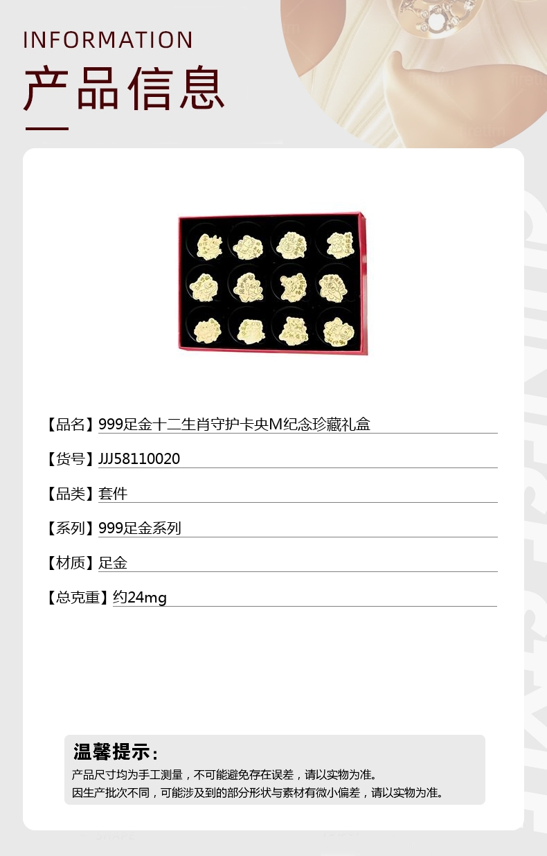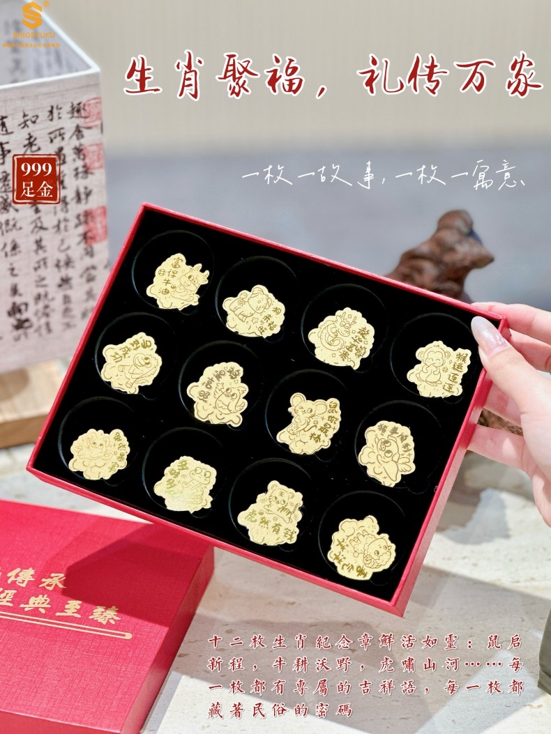 【香港周六福黄金钻石首饰】999足金马上有钱挂饰/手机贴/马上享福金币 十二生肖守护卡央M纪念珍藏礼盒 多款入