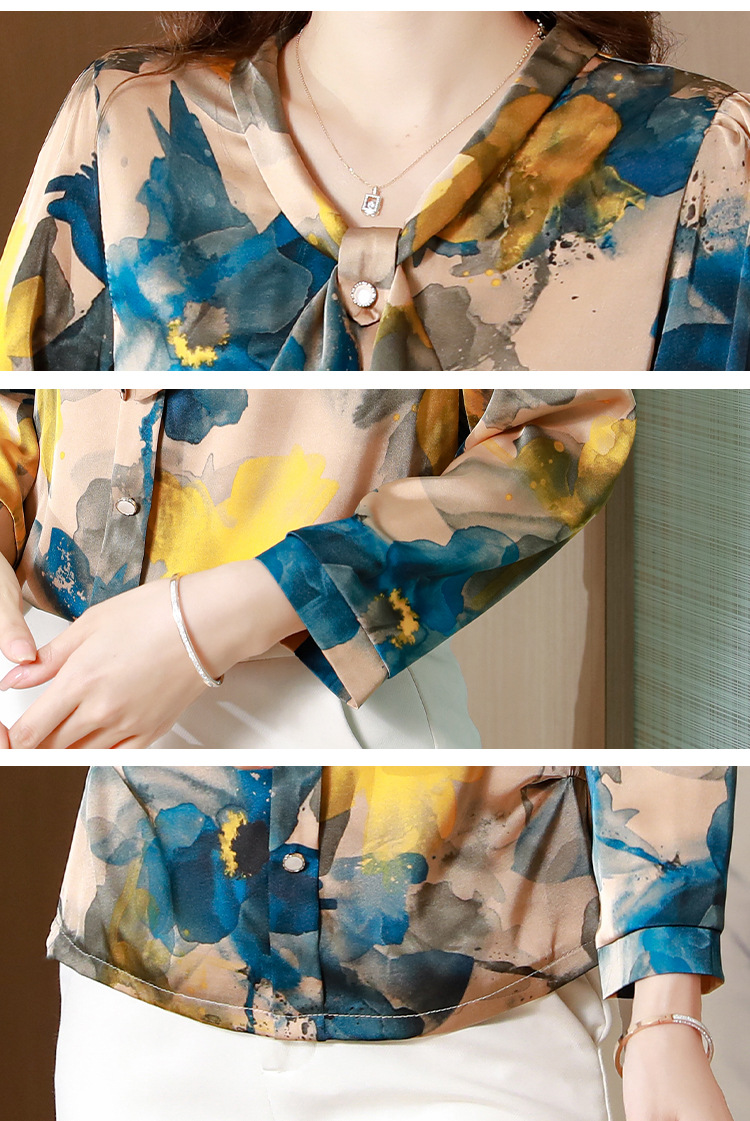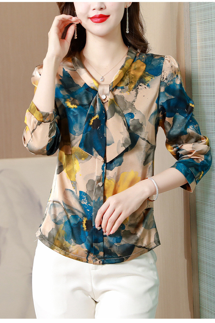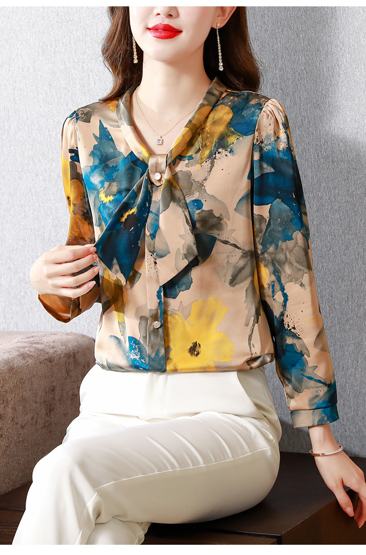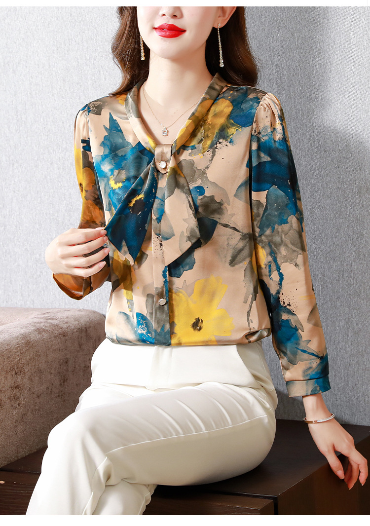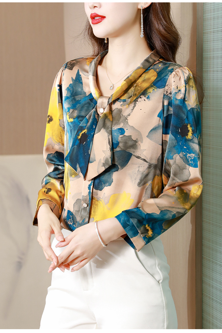 AL2972春款韩国新品蝴蝶结真丝衬衫女