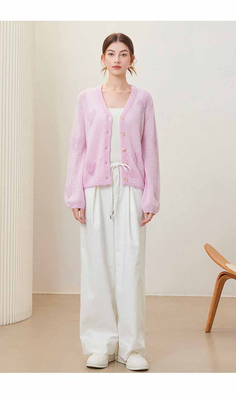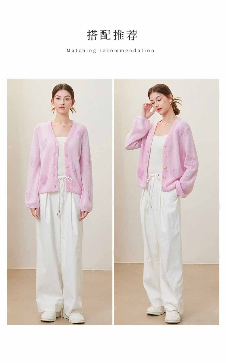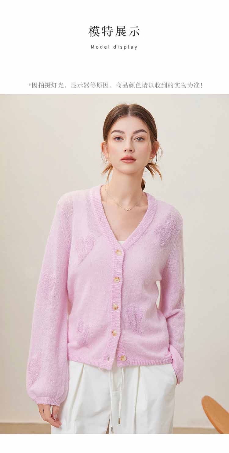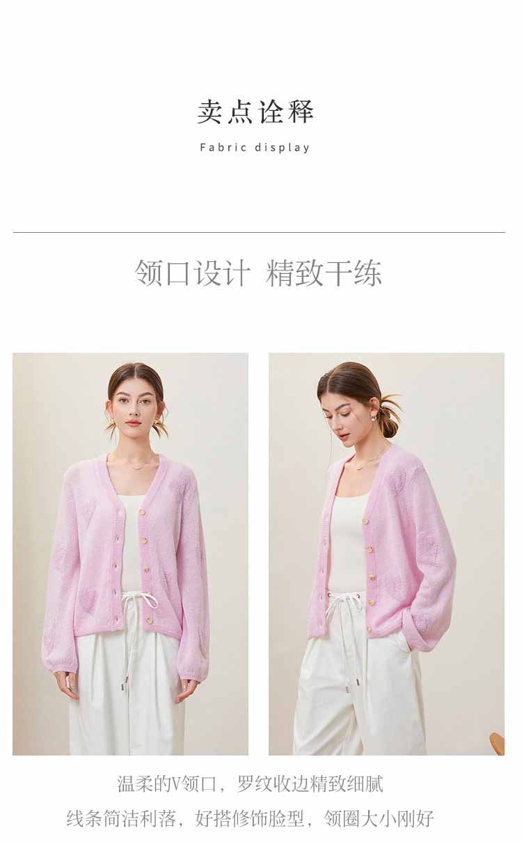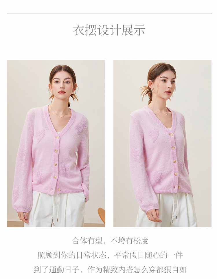【自】全新升级【铂金会员312/天猫419/差价107】(70043) 洛诗琳2025早春新款羊毛马海毛重工提花V领长袖针织开衫外套