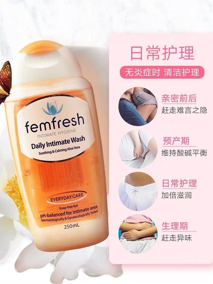 FemFresh护理洗液250ml#百合/#洋柑菊👍作为女性,你值得拥有。在英国澳洲都非常火🔥,更是英国🇬🇧戴安娜王妃专用的私密护理洗液。是经皮肤科、妇女科测试的。独特的无皂温和PH平衡天然成分,无刺激✅。这款是澳洲的版本哦,百合三倍款,迷人花香🌸,适合有炎症,不舒服和特殊情况使用,止痒去异味,轻度炎症靠它妥妥的☺,每周2-3次。