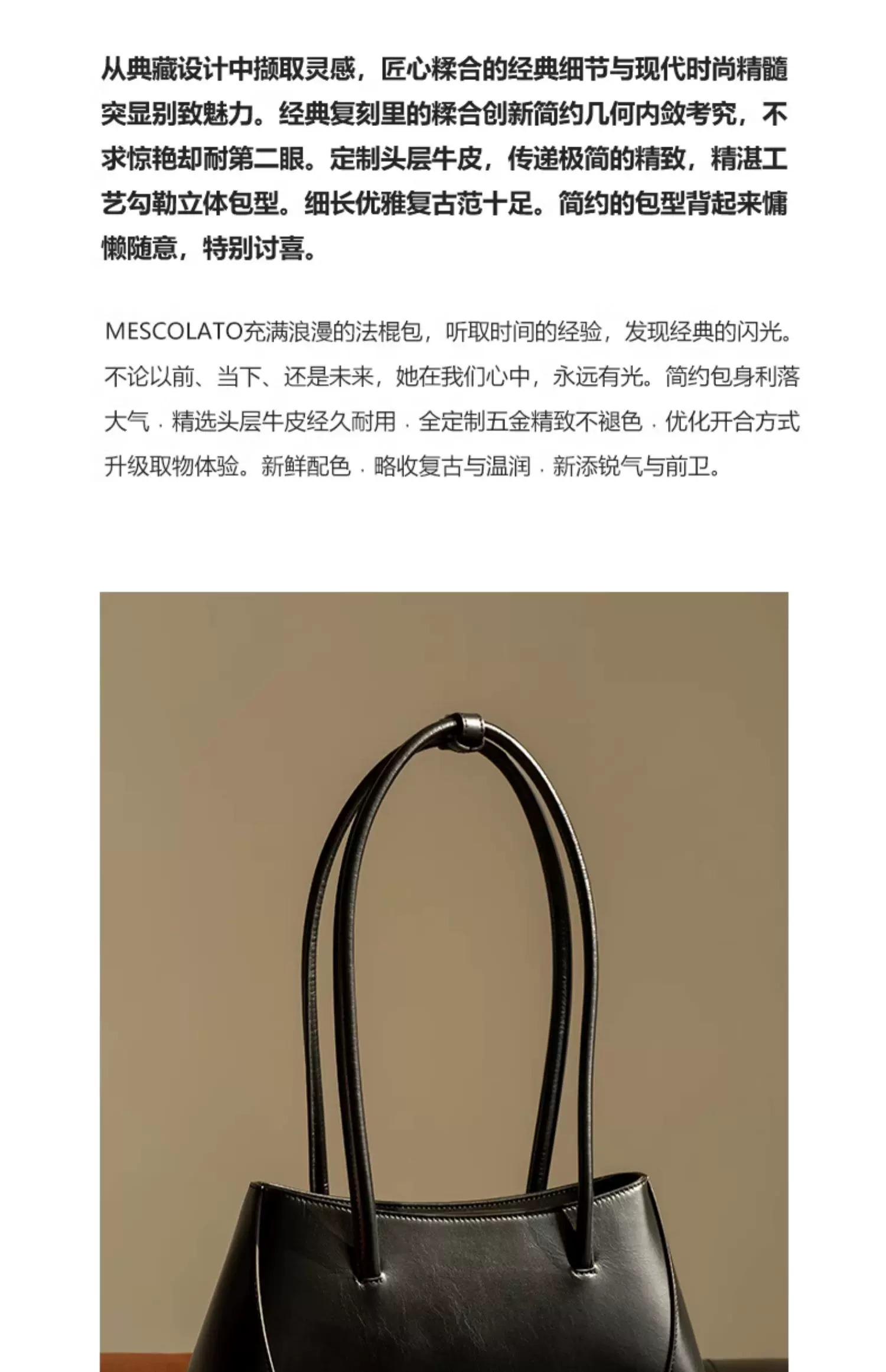 Mescolato 意大利手工新款法棍包小众设计品牌头层牛皮单肩腋下包