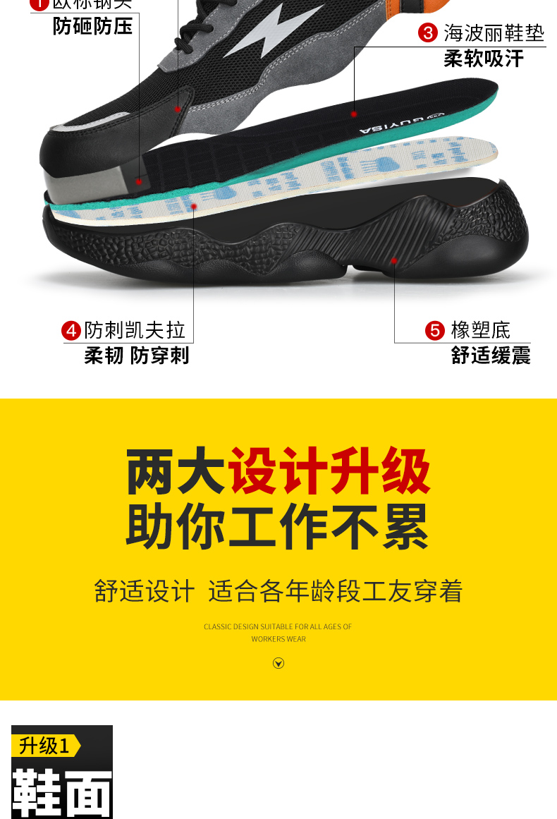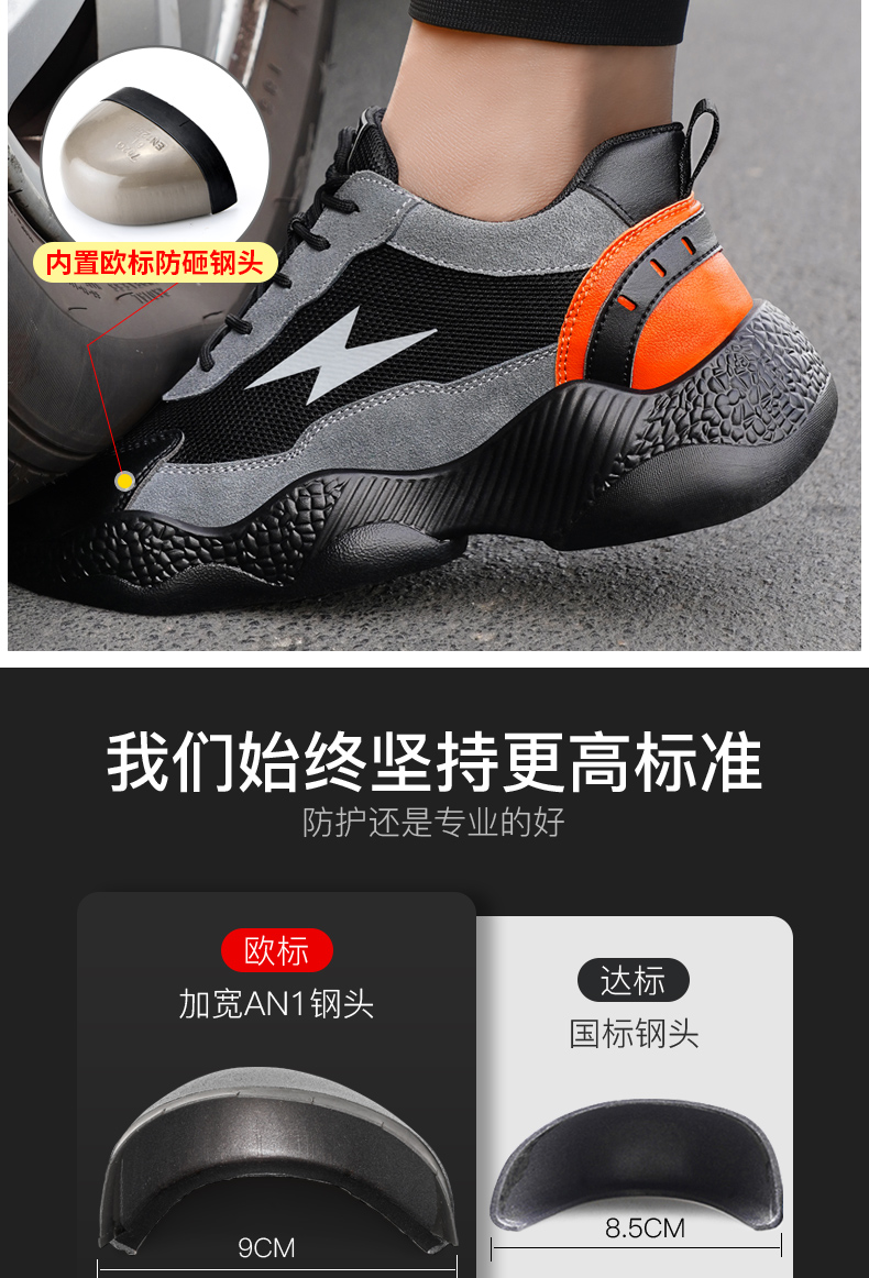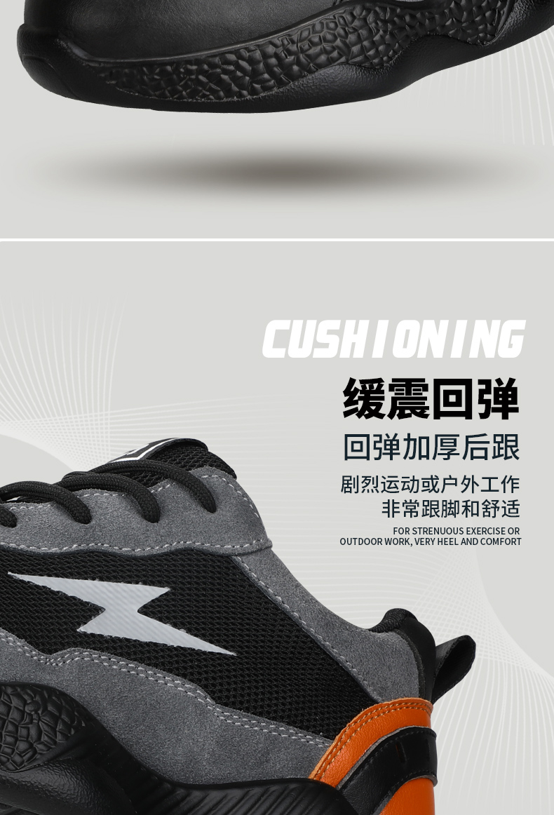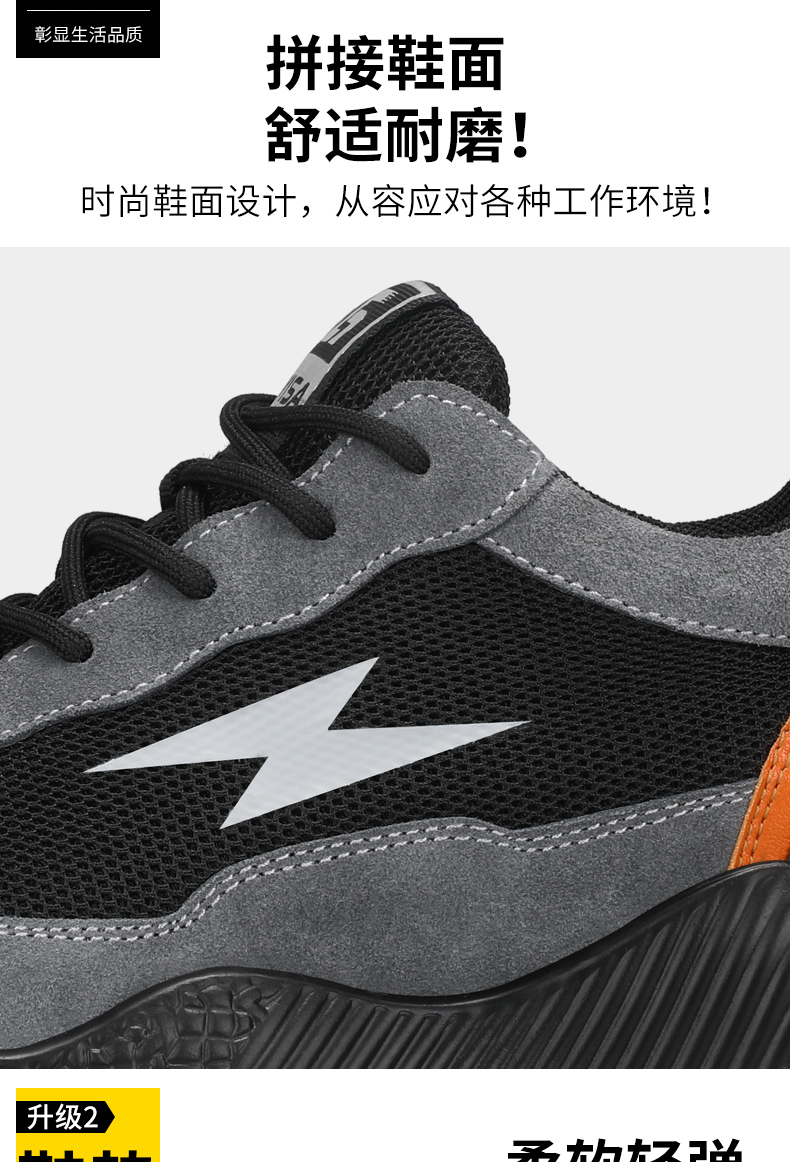 新款四季款劳保鞋透气网布反绒皮拼接防砸防刺轻便安全鞋