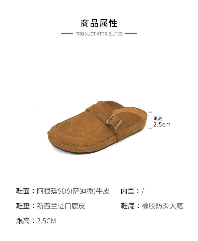 德芙琳Kacey Devlin2025春季新款复古勃肯鞋包头穆勒拖鞋KD9107