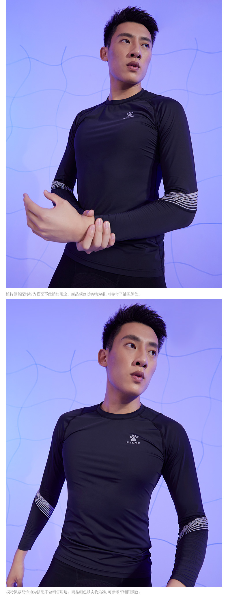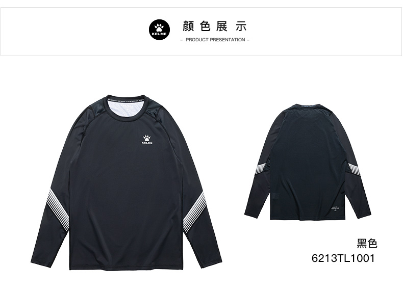卡尔美长袖跑步足球训练健身服圆领紧身高弹户外运动上衣T恤