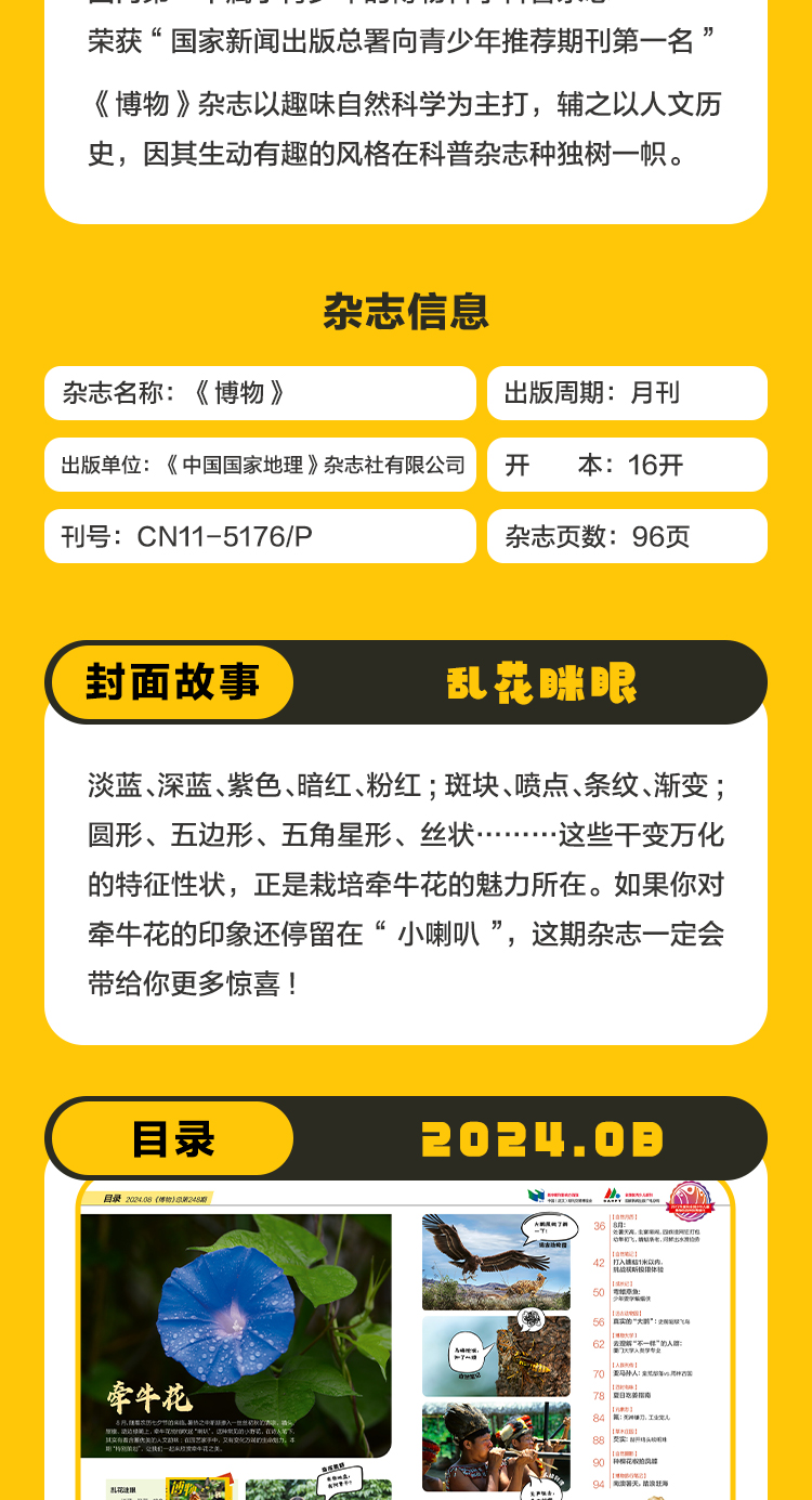 博物杂志 2024年8月刊 牵牛花 精美大拉页 博物大学 青少年科普杂志