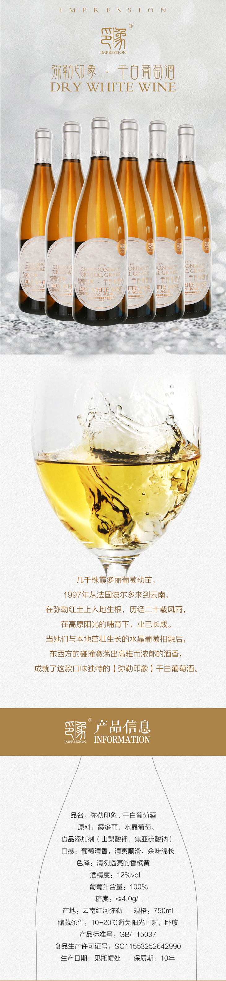 弥勒印象 霞多丽干白葡萄酒礼盒装 整箱750ml*6瓶