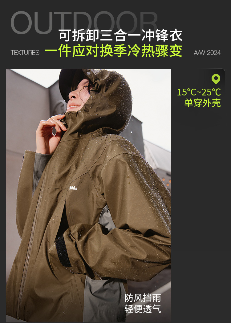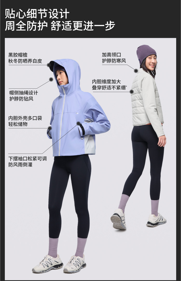 【蕉下精选】蕉下女户外三合一短款气绒冲锋衣LS19524进藏防水登山服