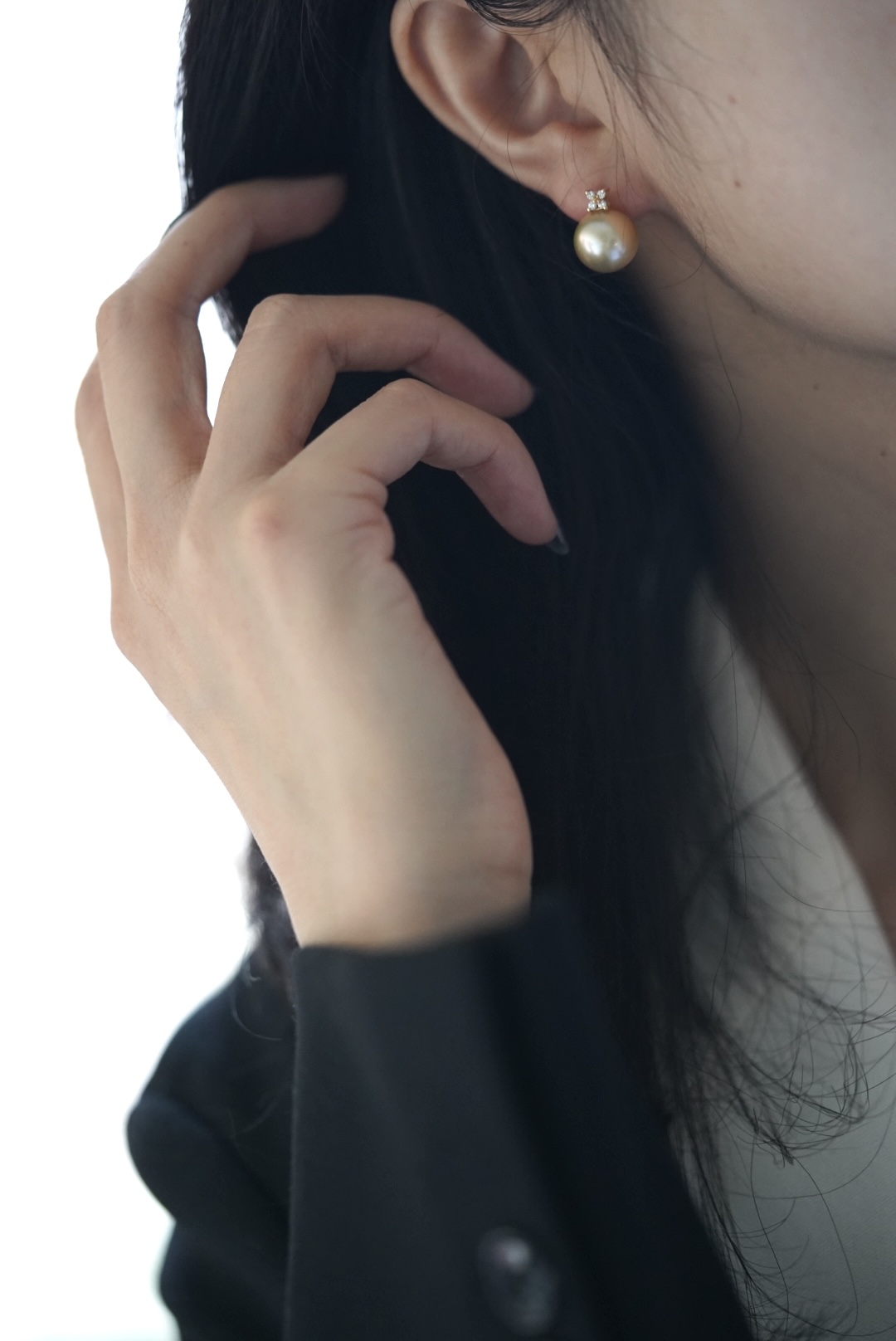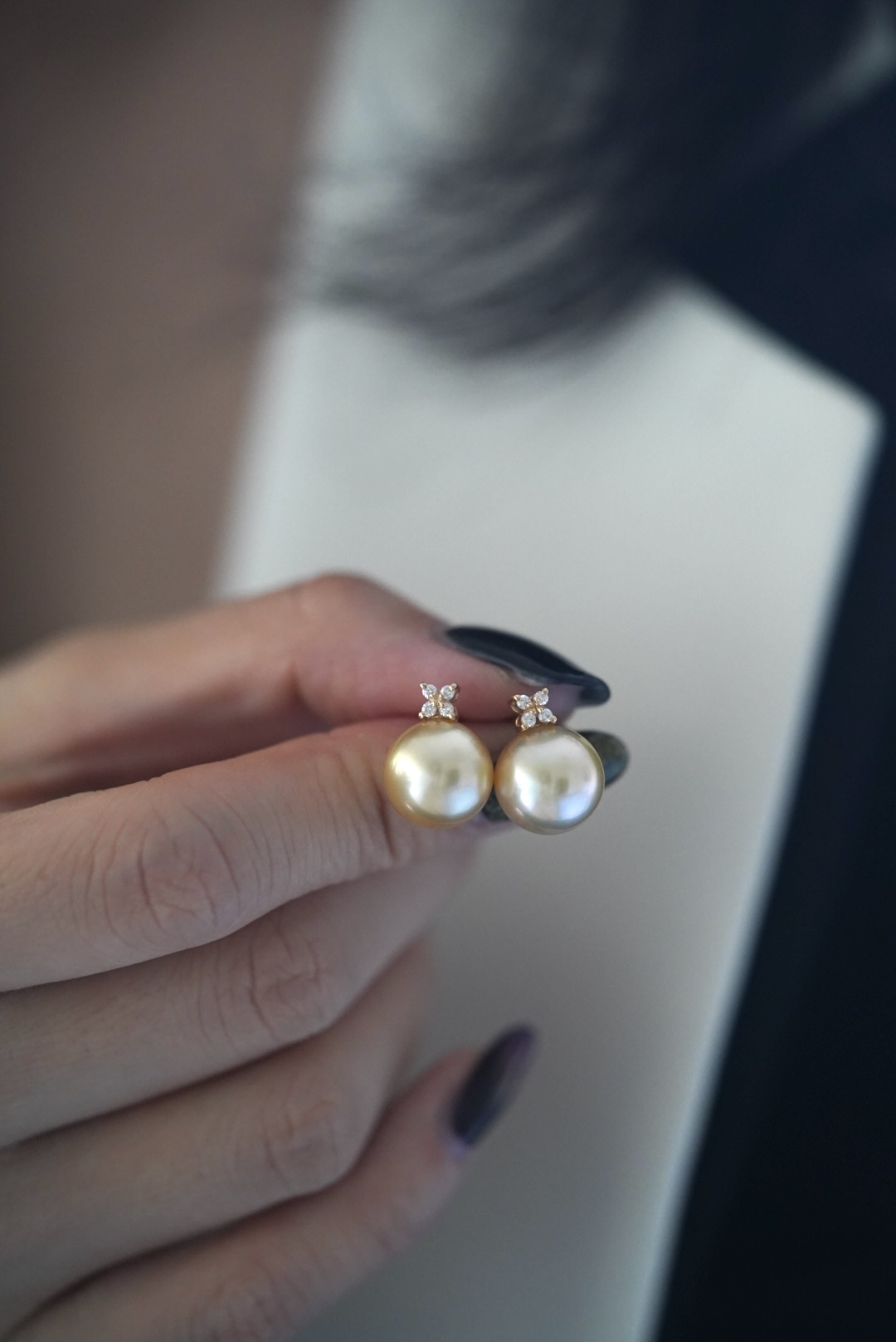 金珠耳饰「四叶草」18k钻石优雅简约风11-12mm 正圆无暇金珠