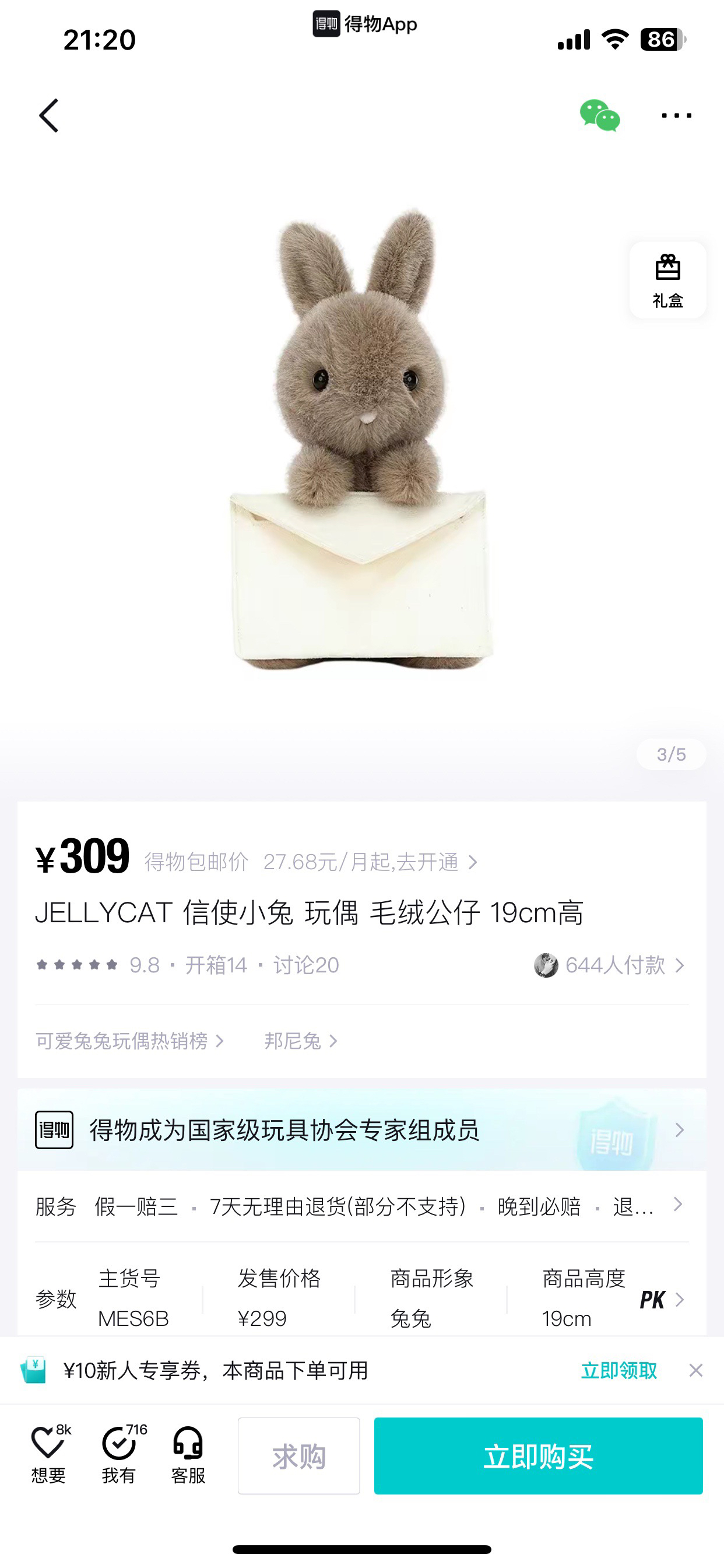 JC信使小兔 是一只感觉超级适合送人的小玩偶 告白表白神器 自带一张贺卡
