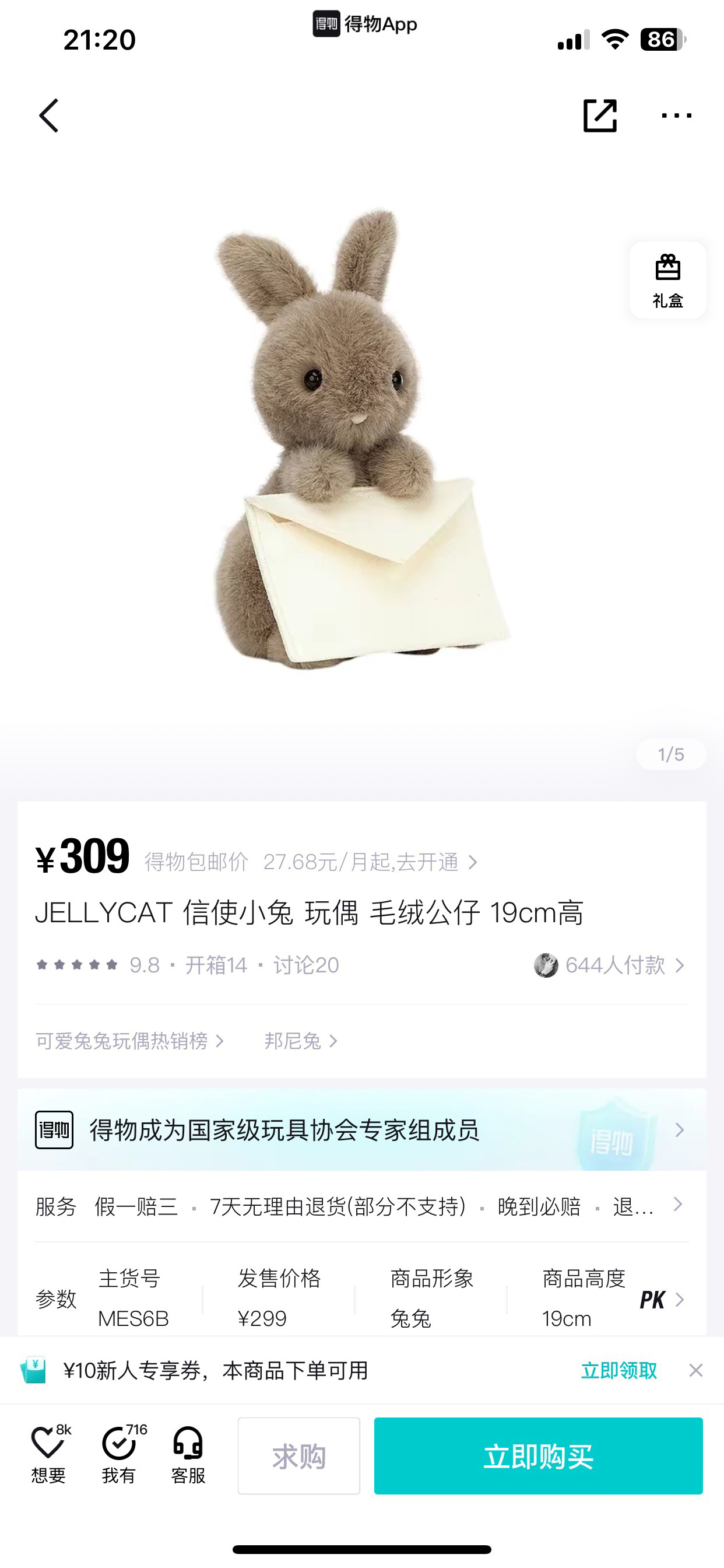 ?接下来是一只毛绒绒圆滚滚的🐰🐰~jellyca*t信使小兔子在售价格300+