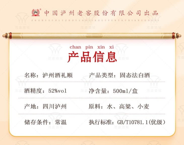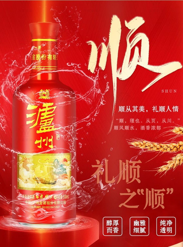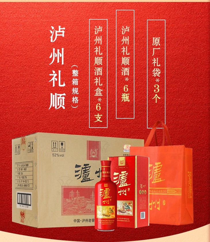【推荐】泸州老窖股份 礼顺 浓香型白酒 52度 500ml*6瓶 整箱装