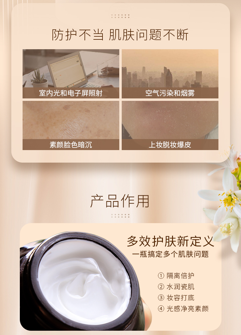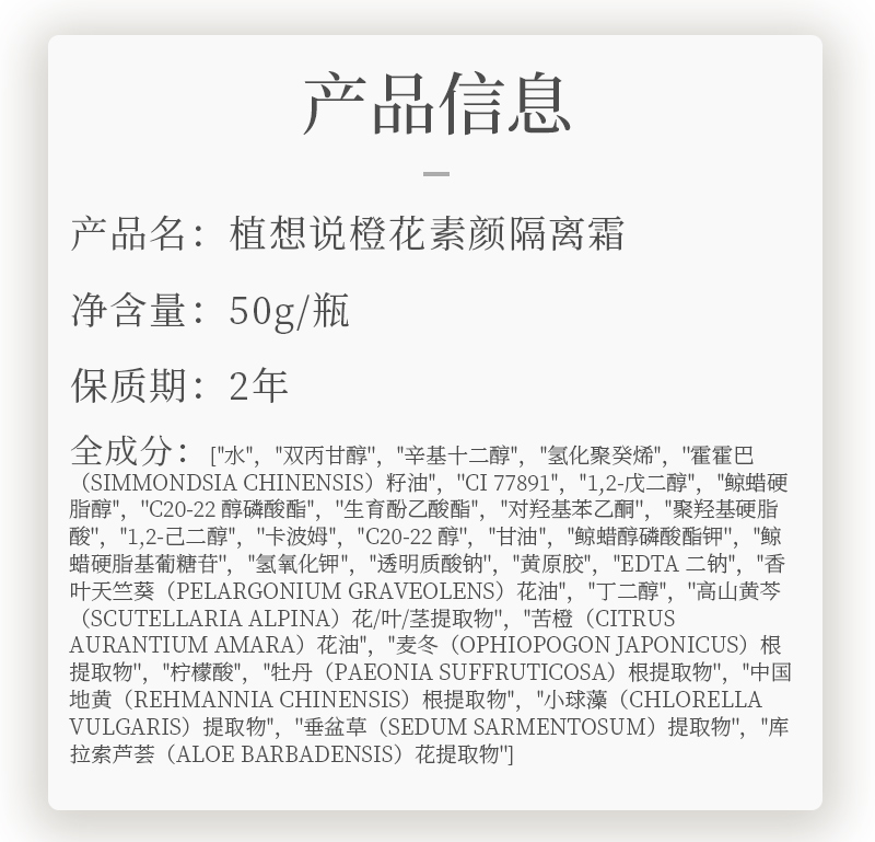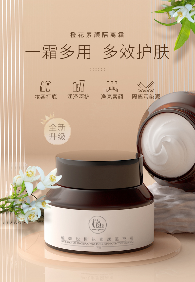 橙花素颜隔离霜 自然不假白 专注植物纯素护肤 植想说妆前乳素颜霜 50g/瓶
