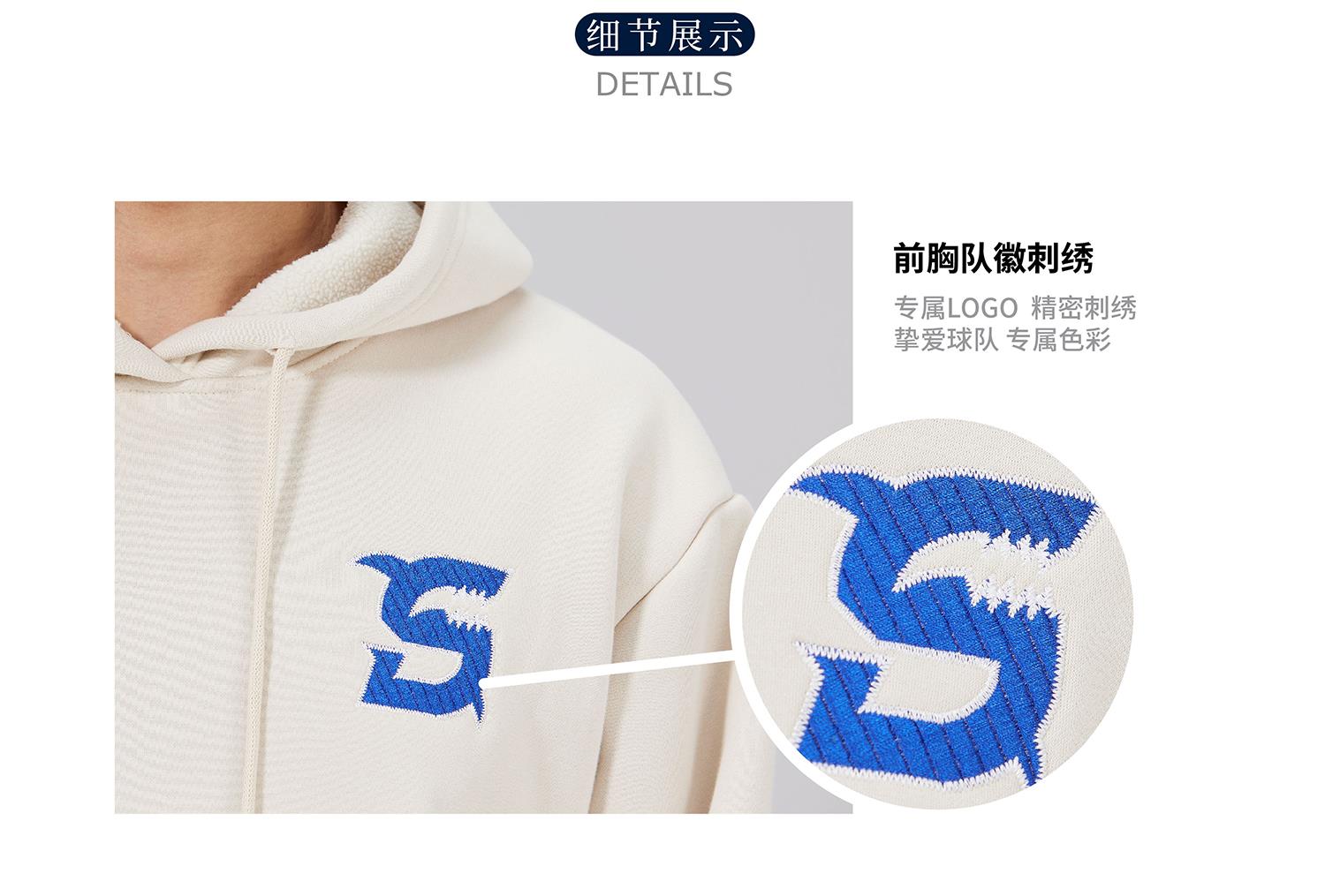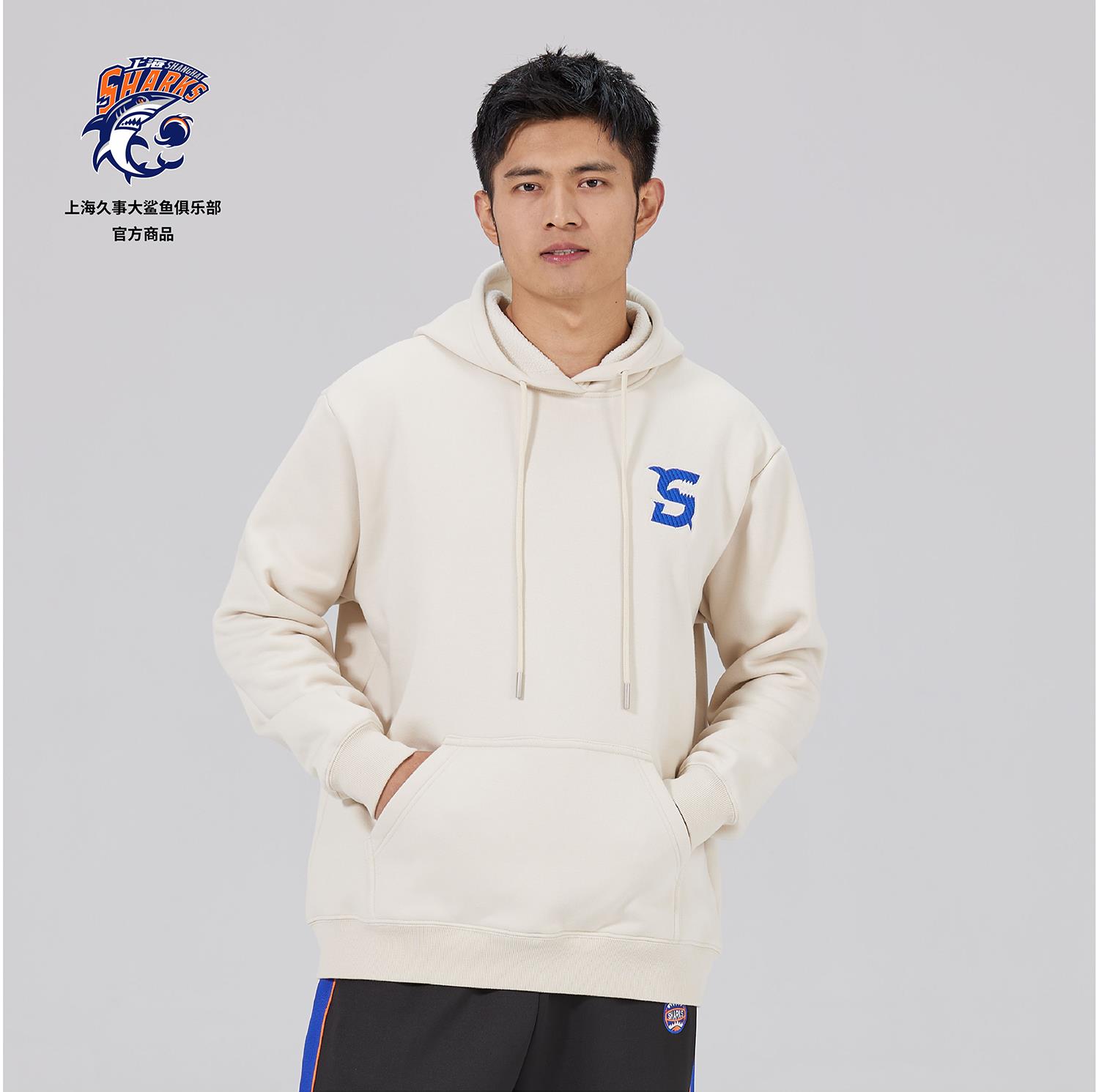 上海久事大鲨鱼俱乐部 | 酷鲨国潮卫衣连帽加绒刺绣卫衣男士长袖
