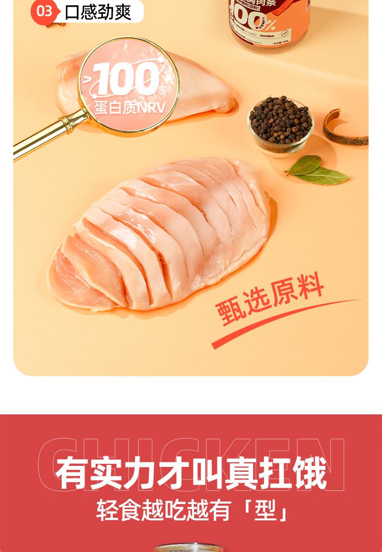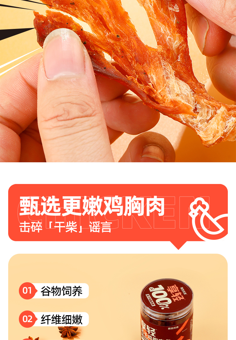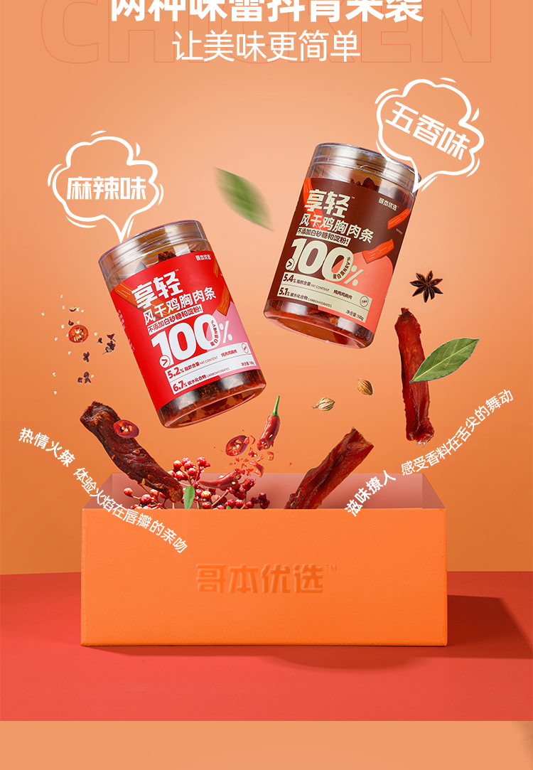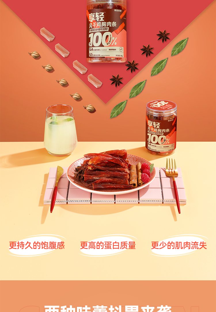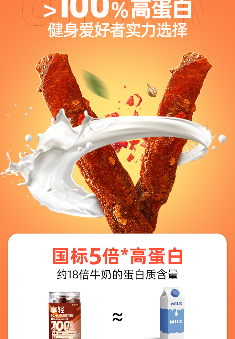 哥本享轻风干鸡胸肉条 3斤鸡胸肉出一斤肉干 高蛋白控碳水 0蔗糖添加 0反式脂肪酸 每罐100g