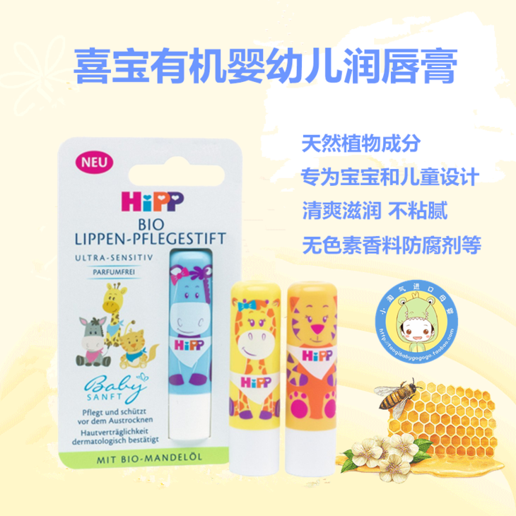 【保税仓】德国 喜宝(Hipp)有机杏仁油润免敏唇膏4.8g图案随机