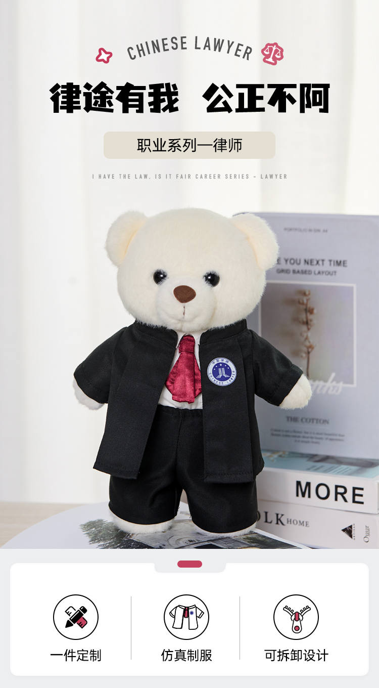 【实付满199送钥匙扣】【律师站姿熊】可定制创意毛绒职业小熊公仔儿童玩具服装可脱送礼礼物