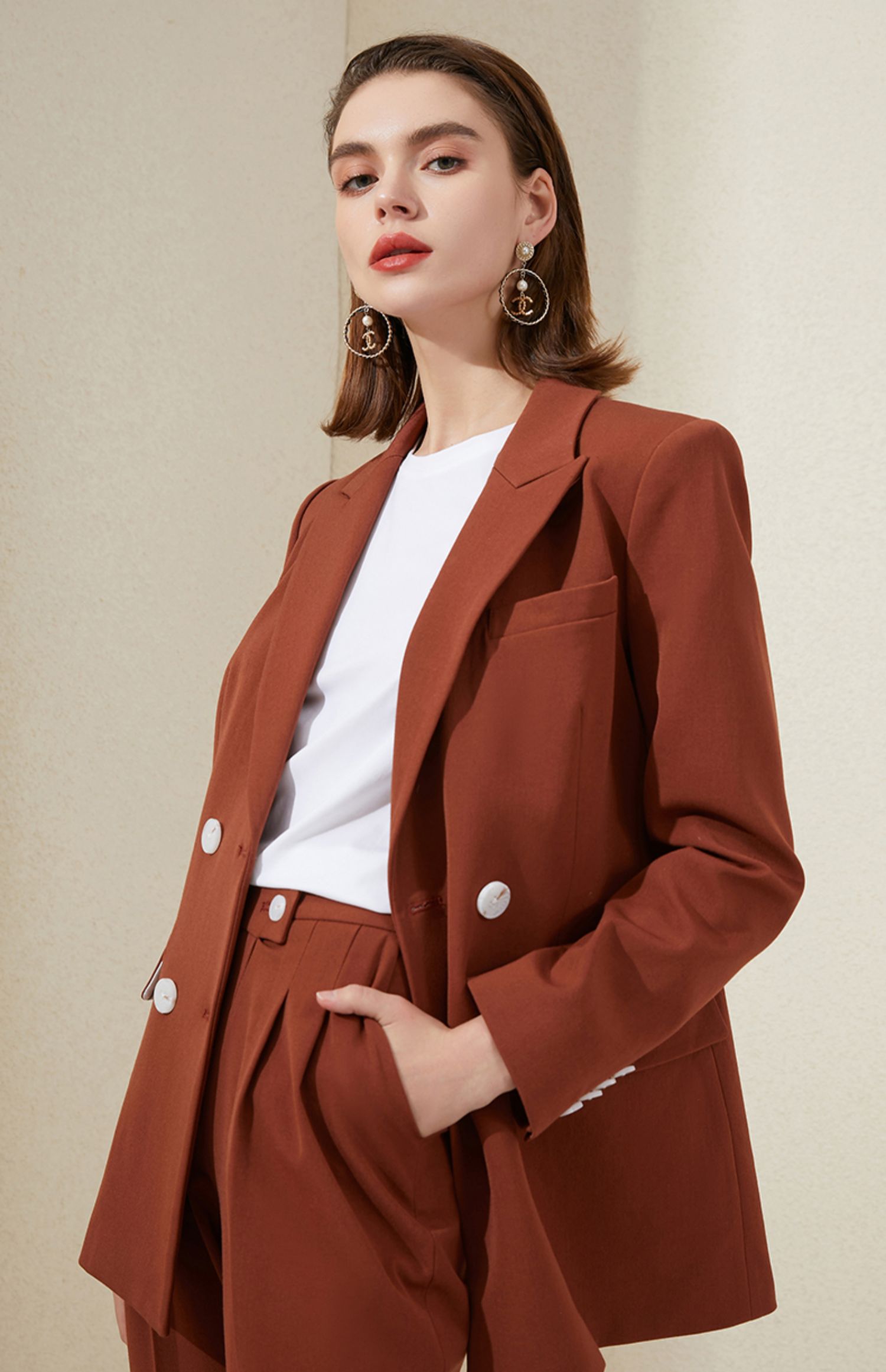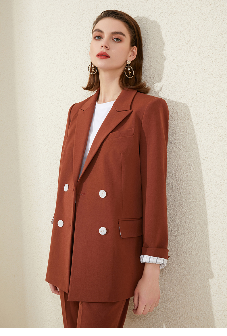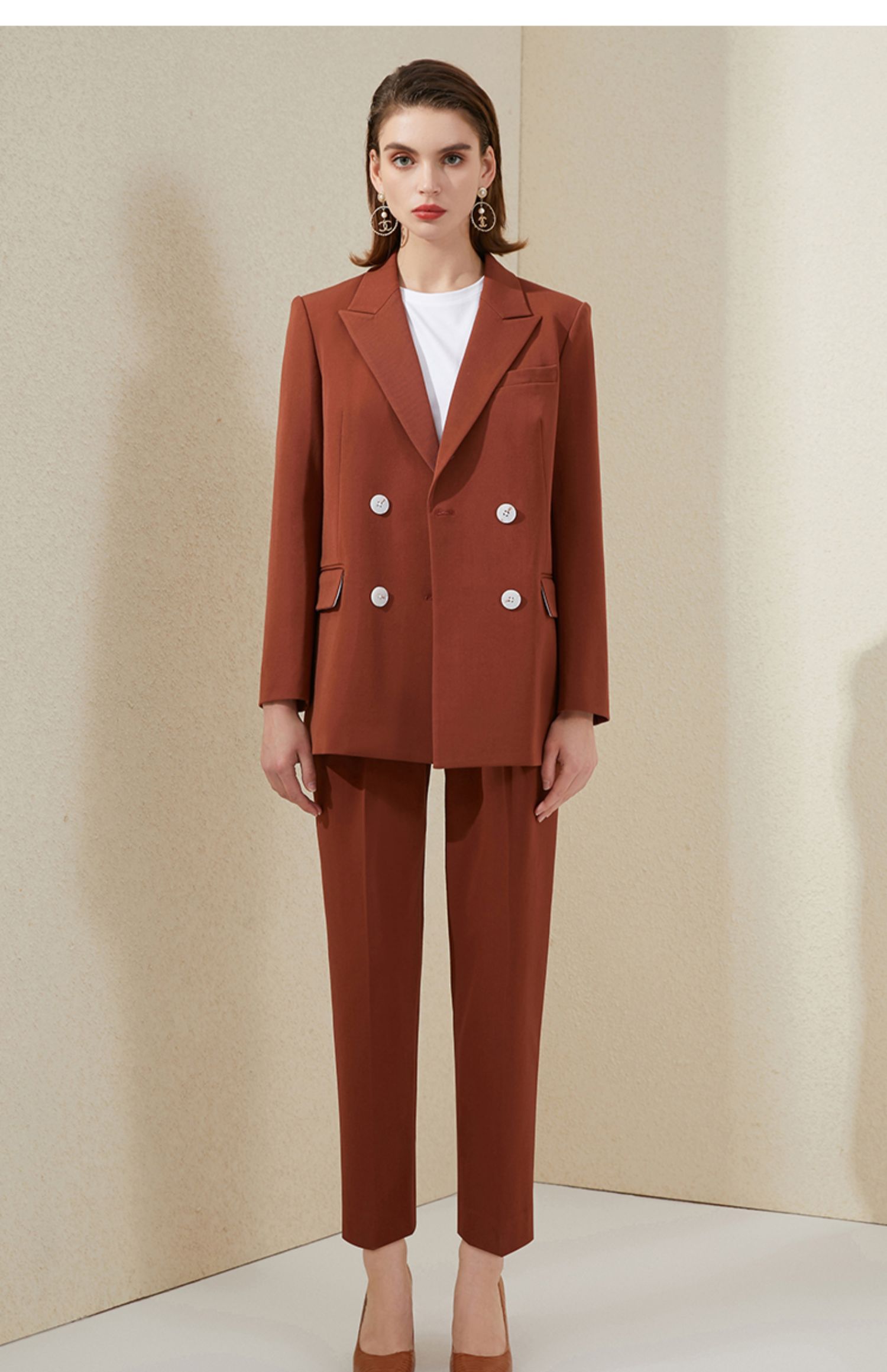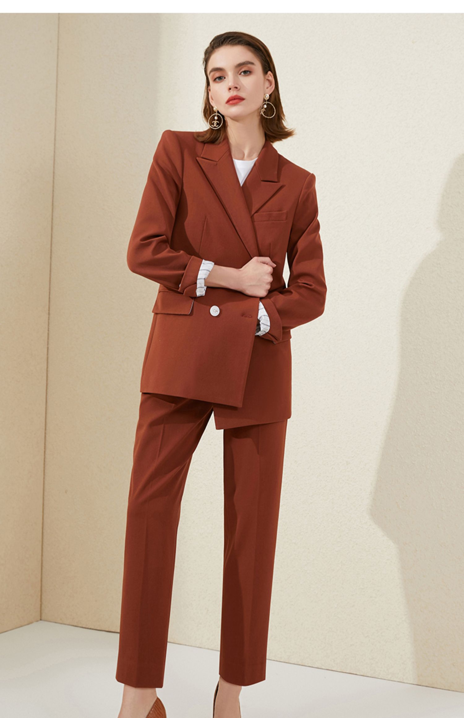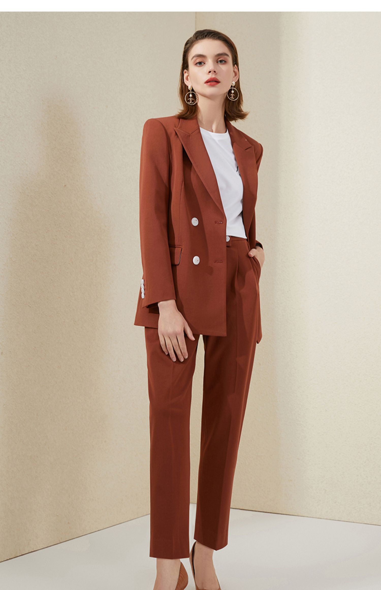 IWY/时尚棕色职业西装女套装气质工装名媛公务员面试正装西服通勤套裤 213189C1+P1