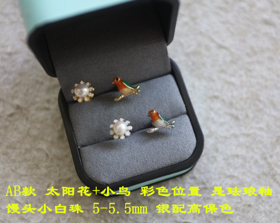 款三 AB款的设计 太阳花+小鸟 金银配色可选 所有彩色的位置 都是珐琅釉