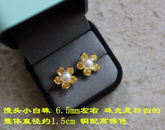 馒头小白珠 6.5mm左右 因金色花瓣立体照过来 仔细看 其实珠光是粉白的