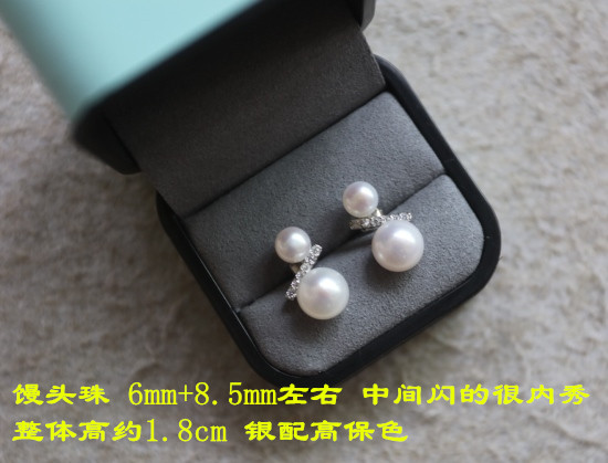 馒头珠 6mm+8.5mm左右 整体高约1.8cm 配件是 银配高保色