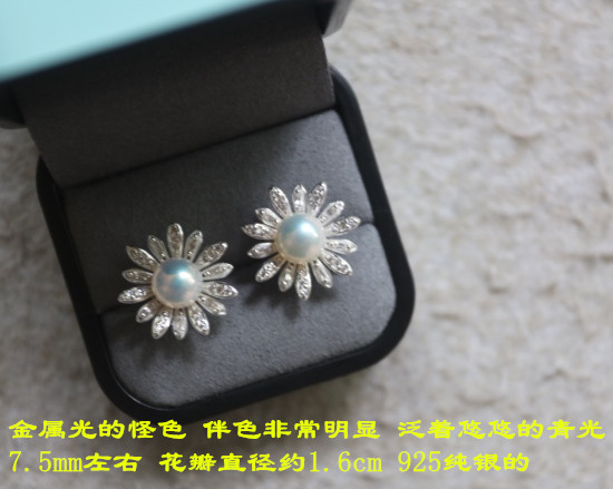 馒头珠 7.5mm左右 花瓣直径约1.6cm 配件是 925纯银的
