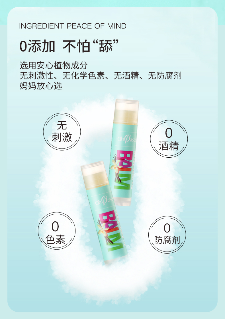 美国OhBases欧比信小甜心润唇膏 植物养润 蜂蜜护唇 滋润保湿防干裂