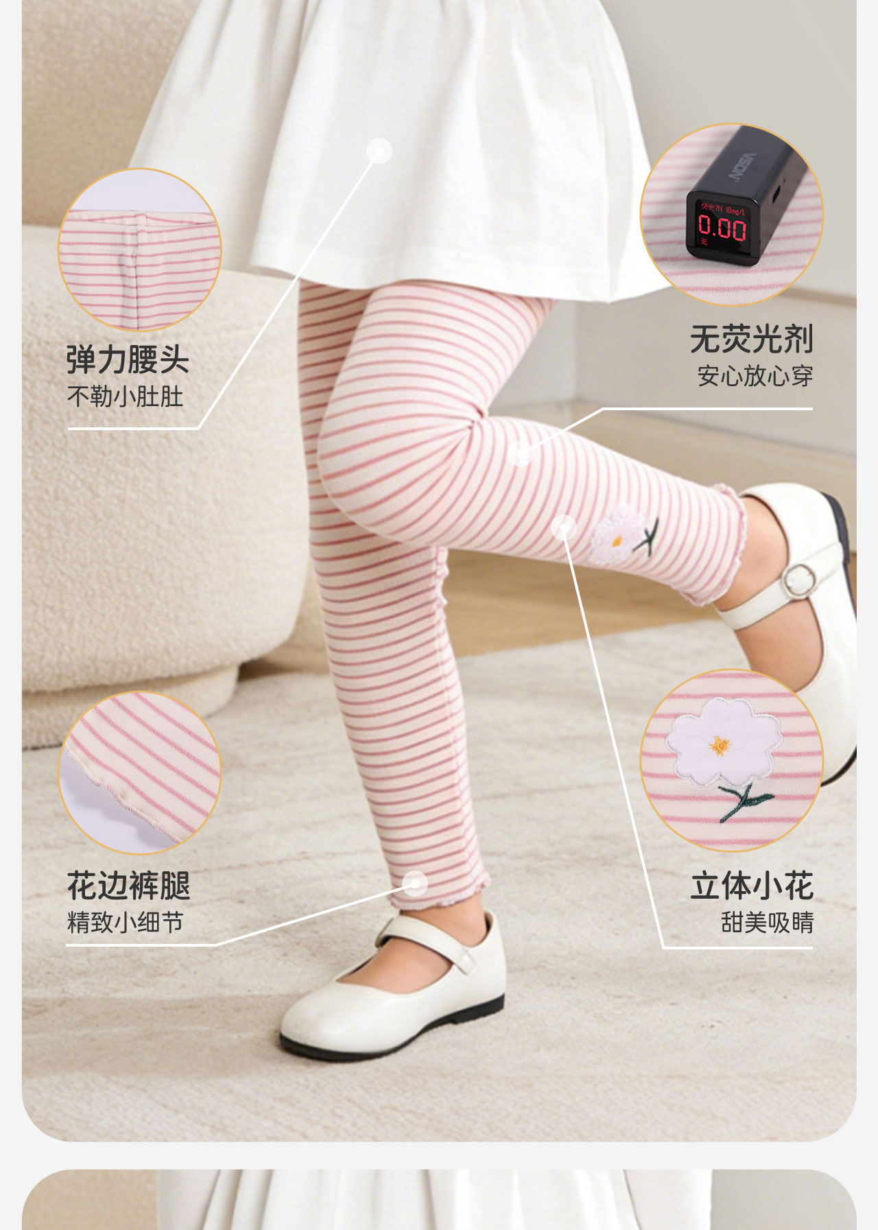 ⁵39.9元/件【女童暖绒单层打底裤】棉花树TWLLBE3046粉条纹 YY05-QTT-AYD