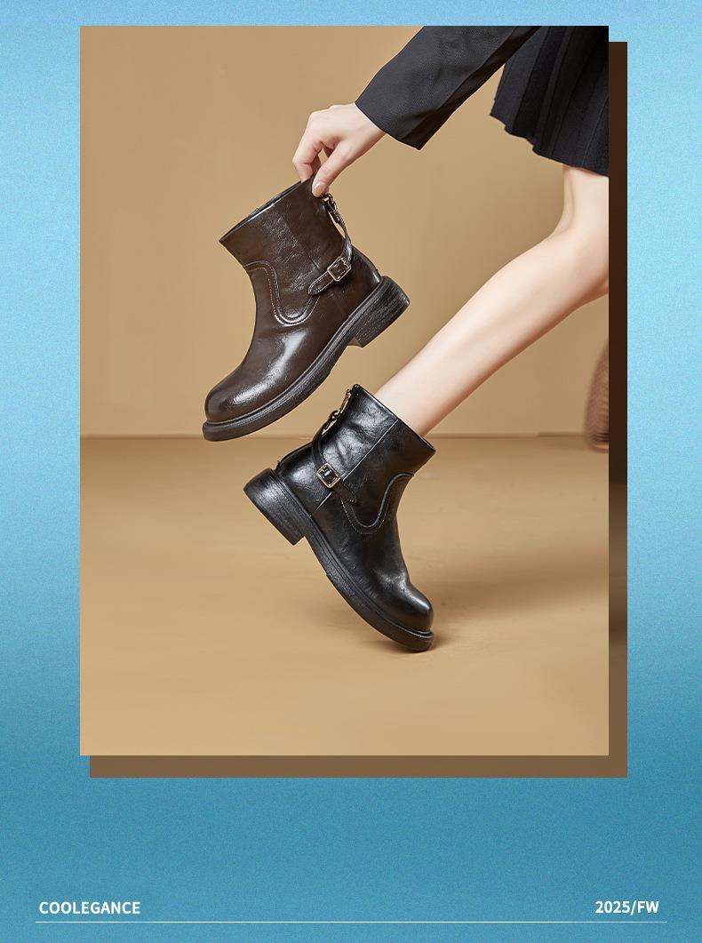 真皮复古马丁靴女2025冬季新款厚底切尔西靴女百搭靴子瘦瘦短靴女