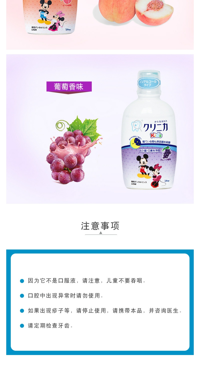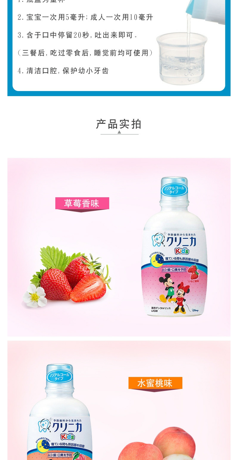 【YZ】日本进口LION狮王米奇儿童漱口水除口臭清洁宝宝防蛀牙可吞咽