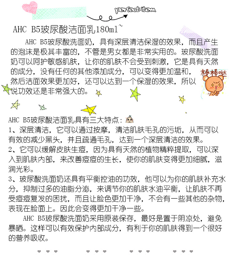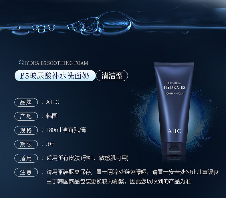 AHC B5玻尿酸洁面乳180ml(新旧包装随机发) 原价119元