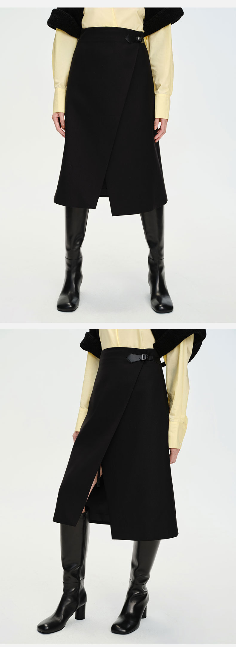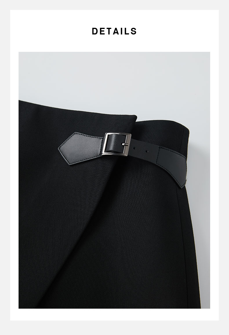 HIDEMI 黑色不对称开衩设计感拼皮扣半身裙皮裙