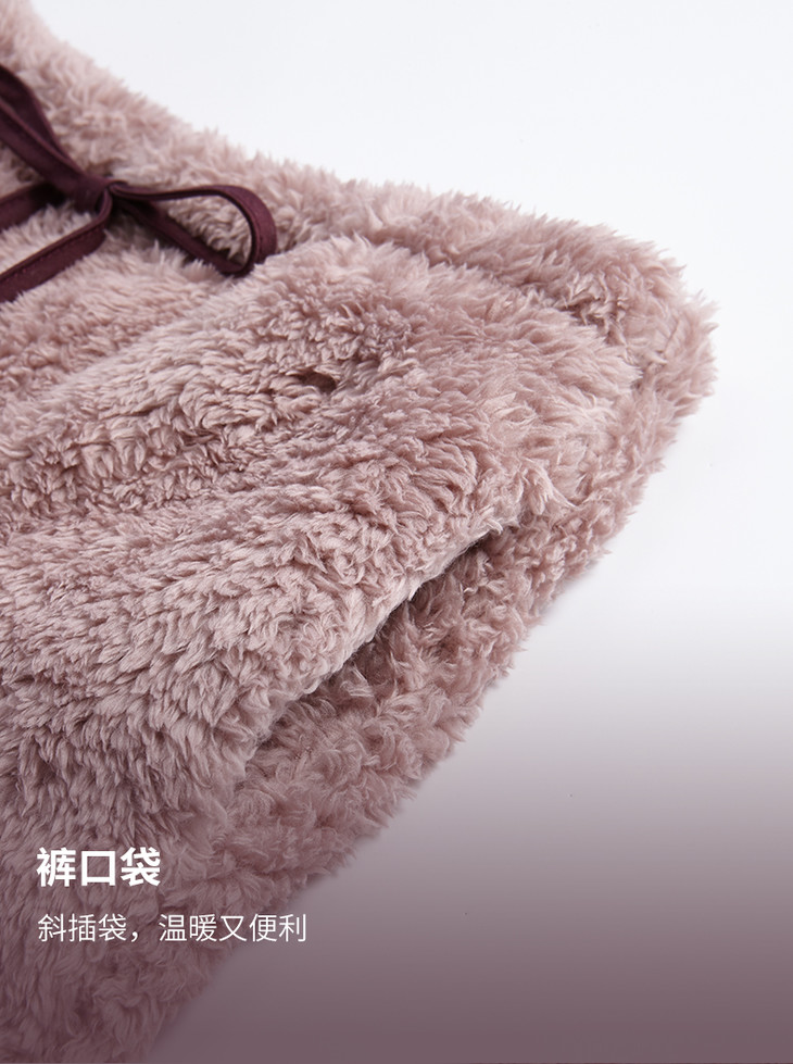 HSIA遐睡衣女冬季新款连帽拉链双面舒棉绒蓬松保暖宽松家居服套装