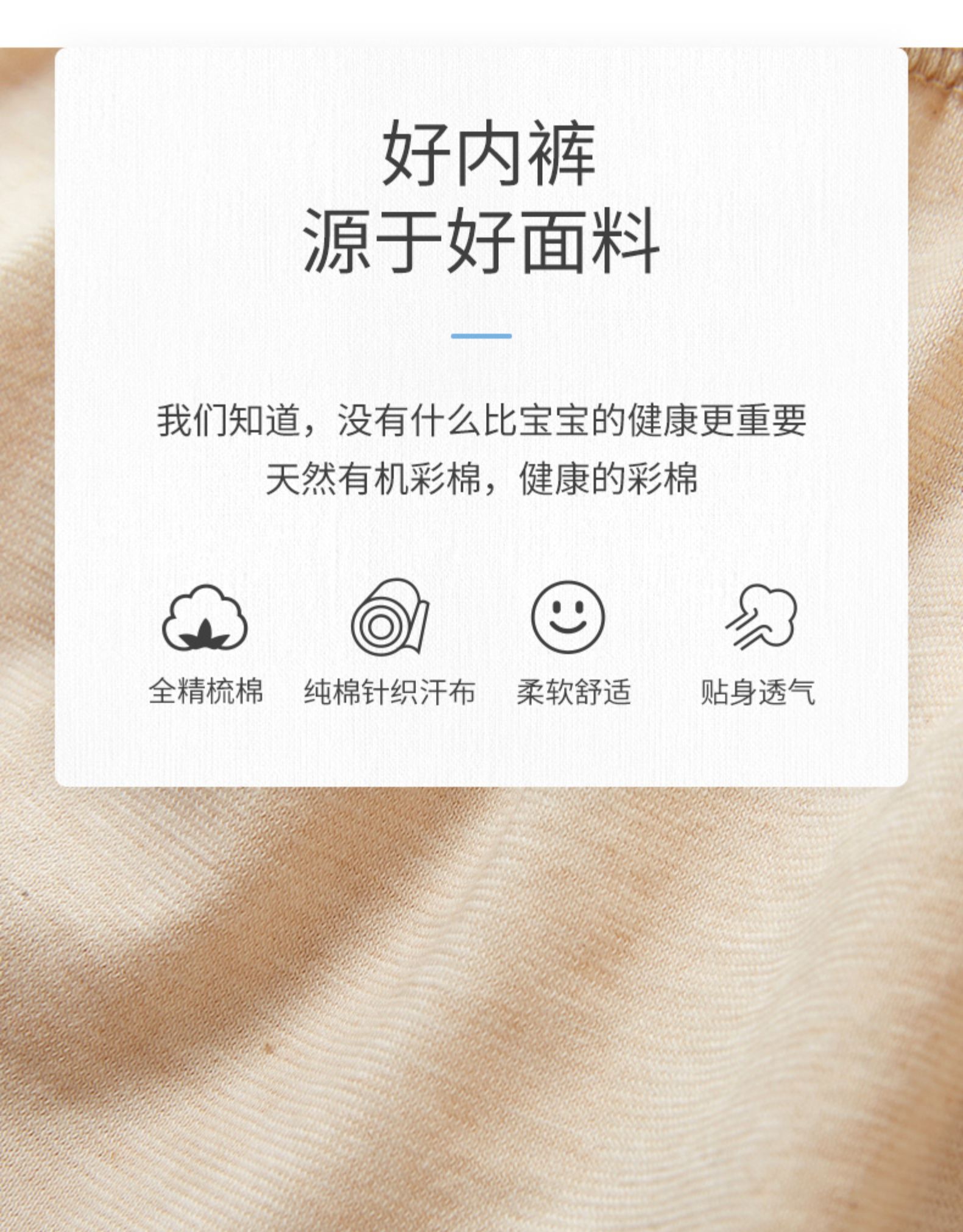 素道有机彩棉男童内裤 纯棉A类男大童平角裤男孩舒适宽松四角短裤