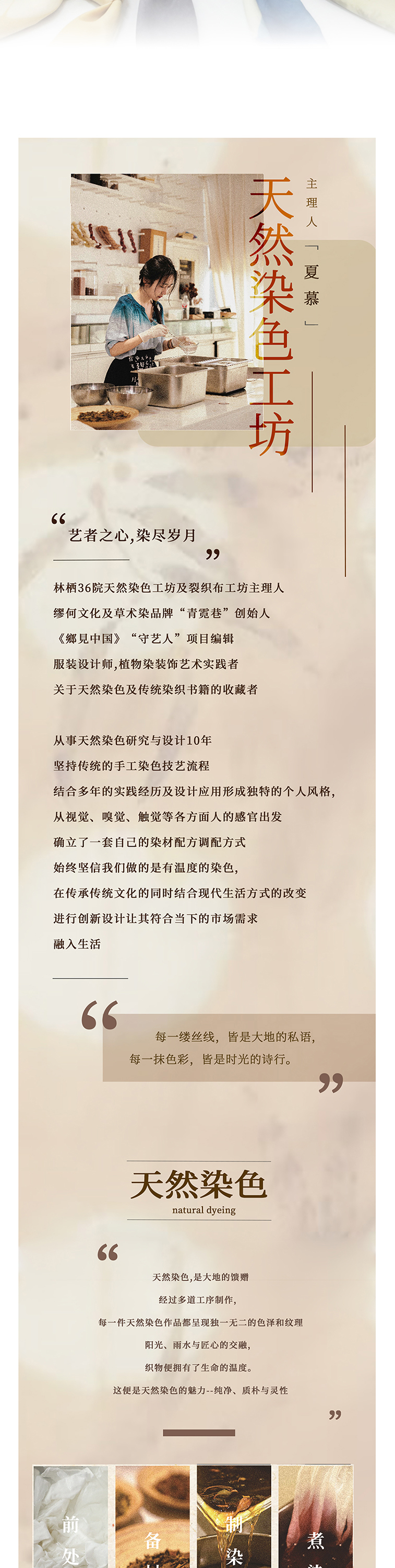 - hi~我是林栖 很高兴你也在关注和热爱着传统手工艺 我想让你穿上 用传统手工艺做出的、不输给国外奢侈品的衣服