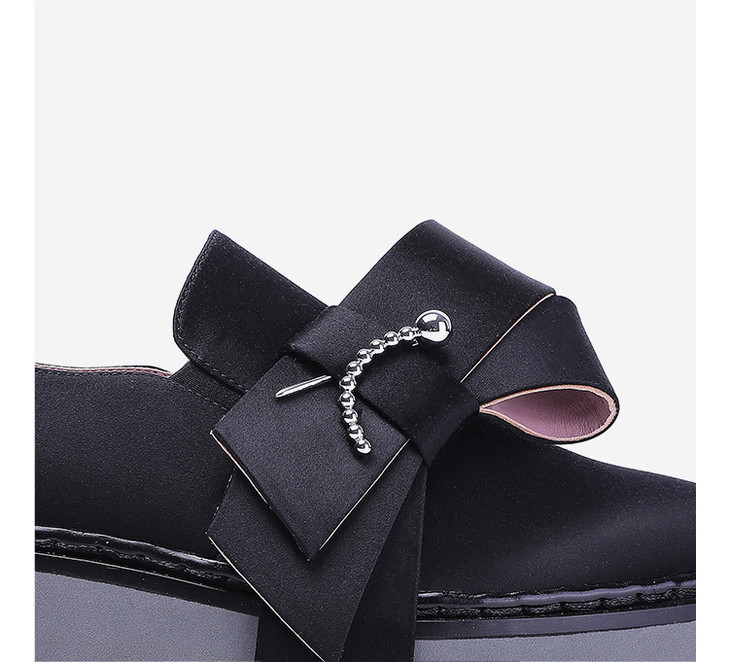 lost in echo真丝厚底休闲鞋 蝴蝶结黑色平底女鞋