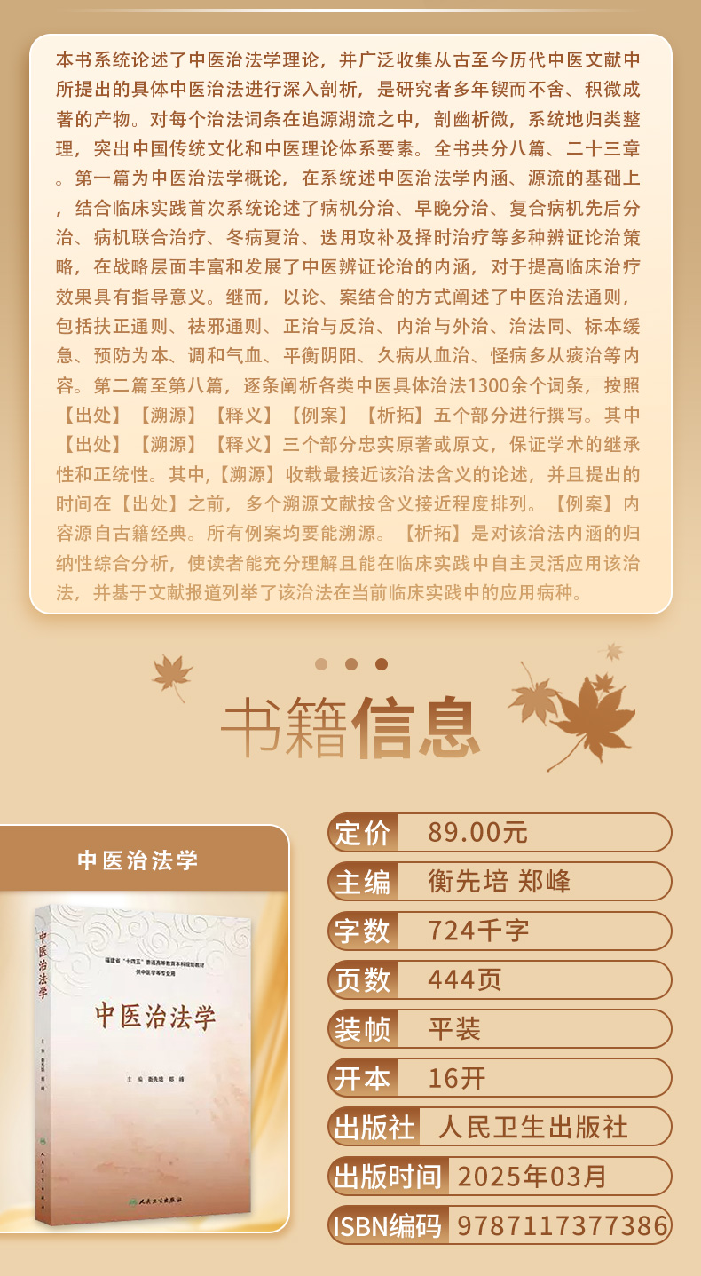 中医治法学 创新教材 衡先培 郑峰 主编 十四五普通高等教育本科规划教材 供中医学等专业 9787117377386人民卫生出版社