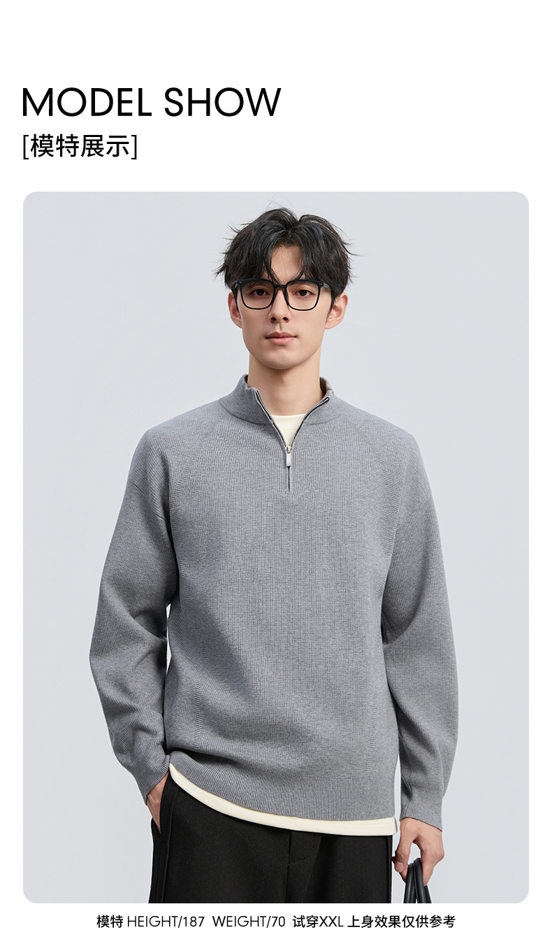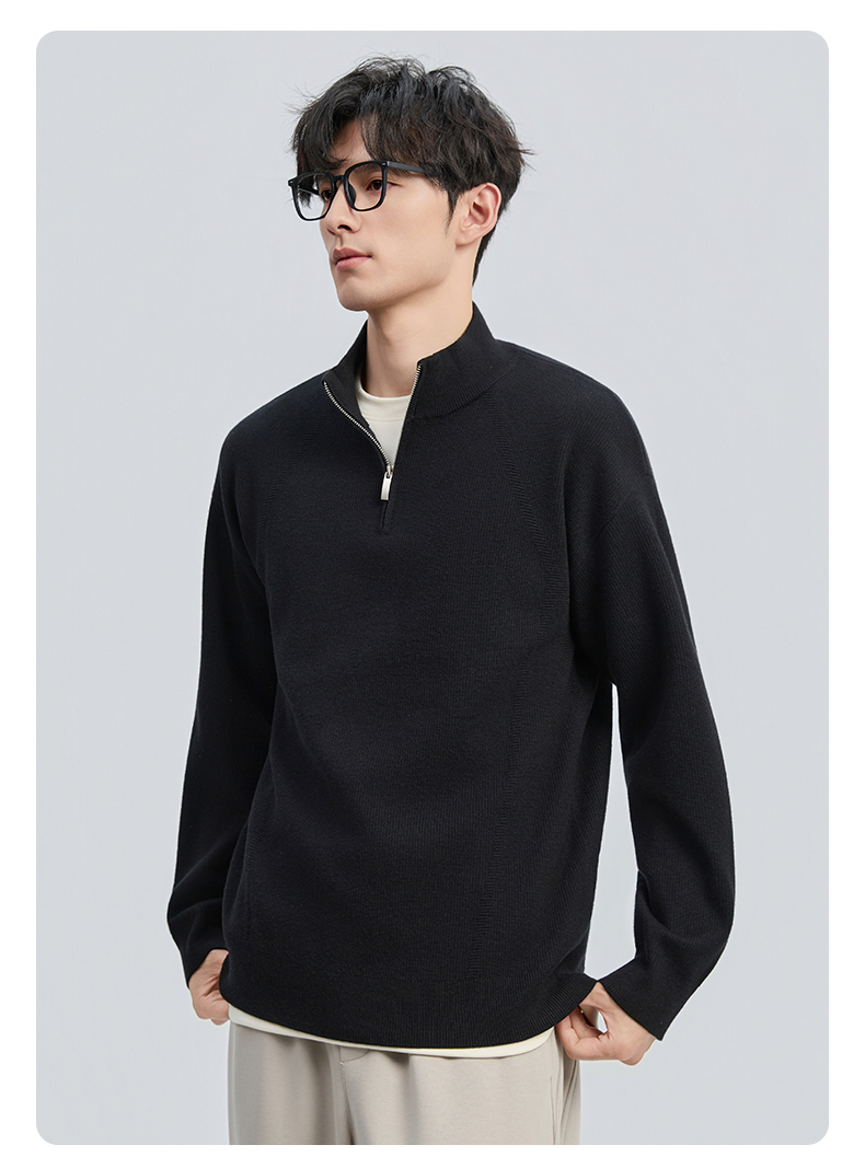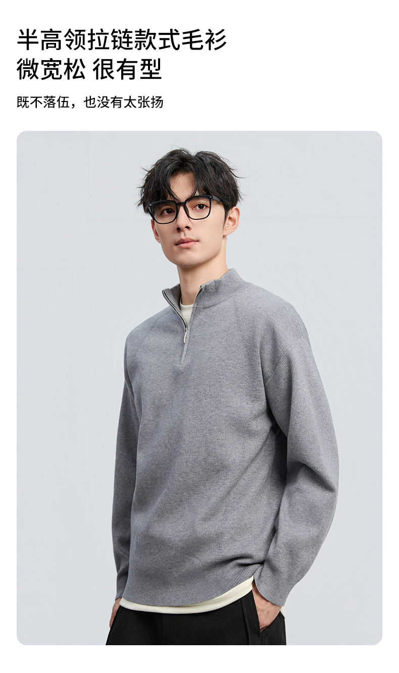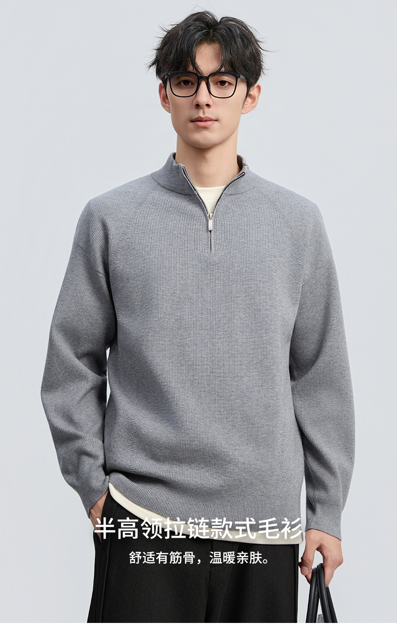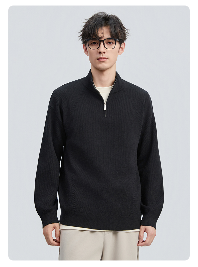 贝纳川冬季新品半拉链套头立领毛衣ECF416001