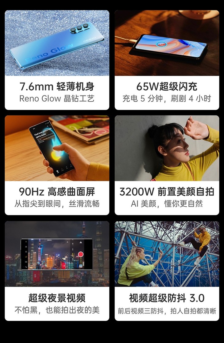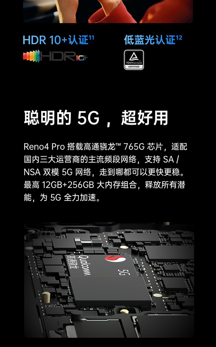 OPPO Reno4 Pro 超级夜景视频 65W超级闪充 7.6mm超轻薄设计 双模5G 12GB+256GB 拍照游戏视频手机