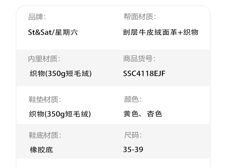 星期六柔软加绒厚底魔术贴毛毛鞋SSC4118EJF