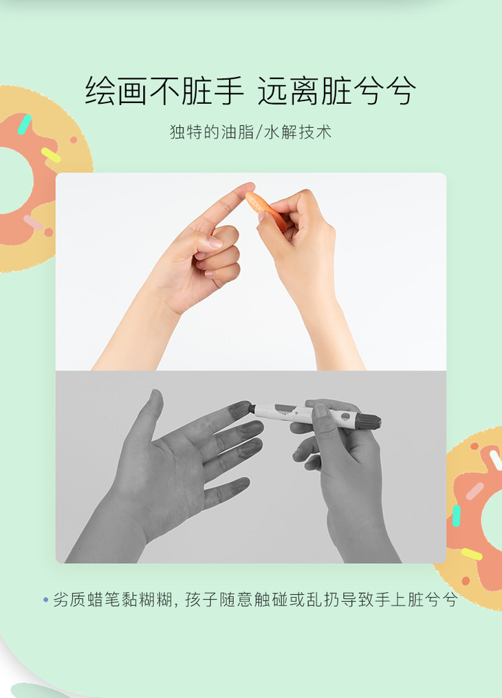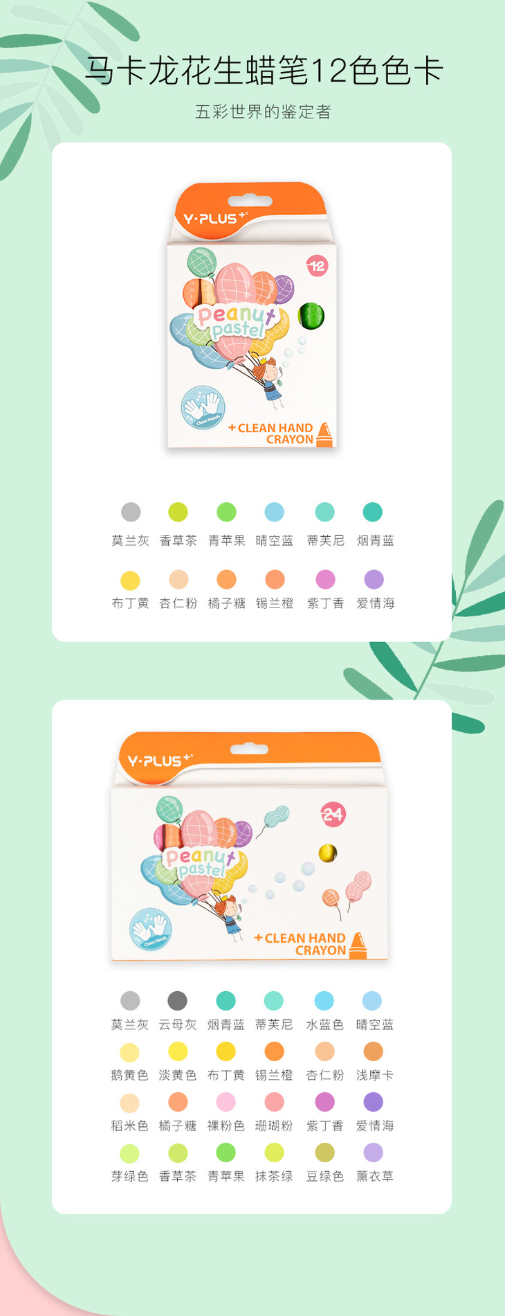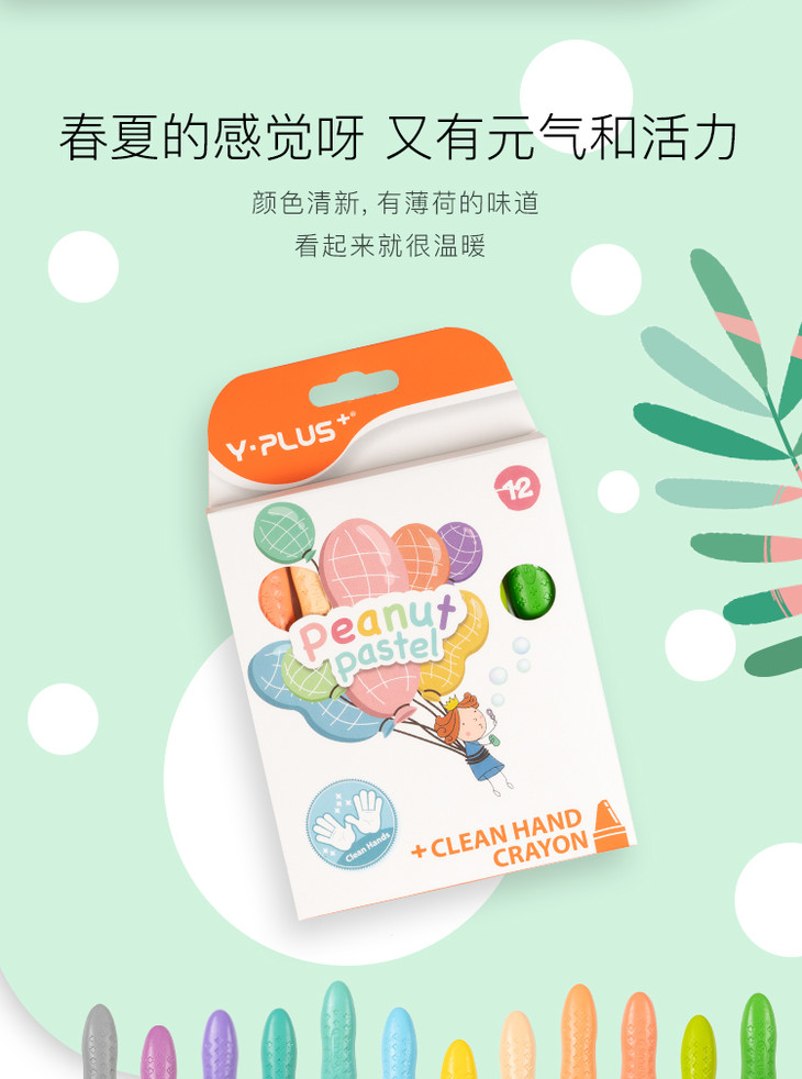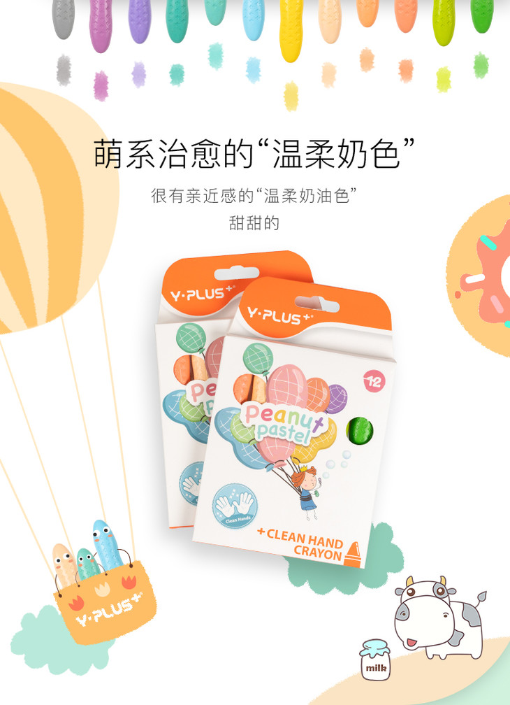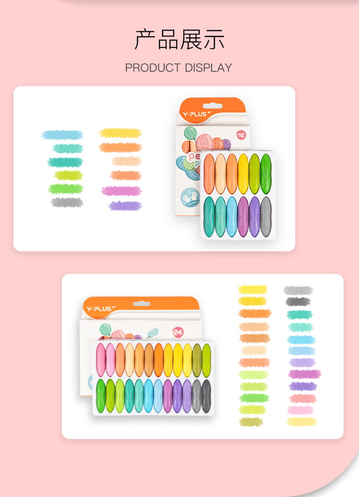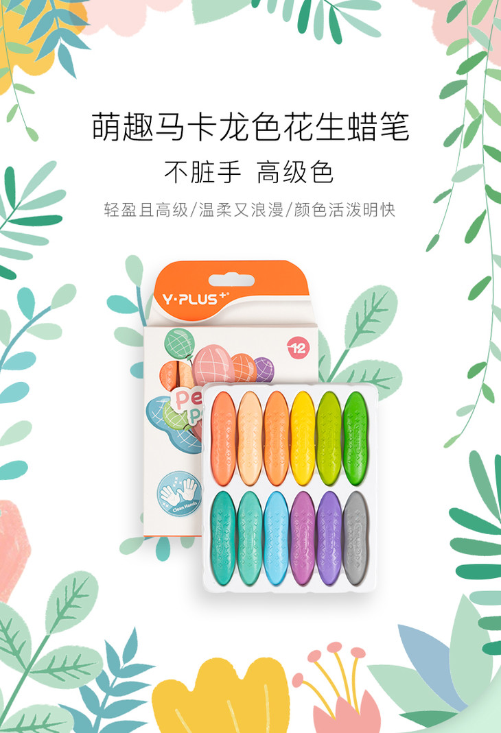 【好玩不脏手,温柔且清新】英国YPLUS儿童花生蜡笔马卡龙色安全水溶性画笔24/36色绘画幼儿园油画棒宝宝小学生腊笔可水洗男女孩创意文具玩具