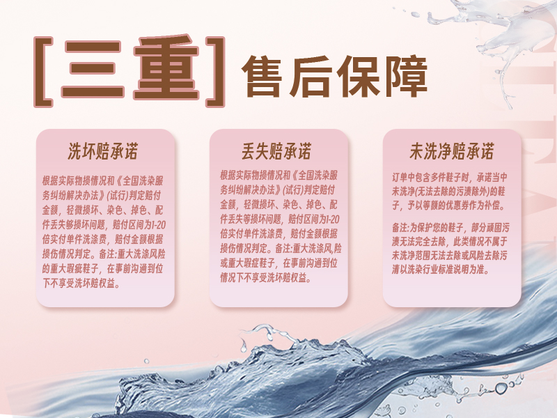 5、因鞋子穿着日久有自然磨损,若因清洗原因导致个别部件自然脱落的,赔偿金额将按照不超过清洗该双鞋子的3倍进行赔付。下单后默认客户同意该约定。